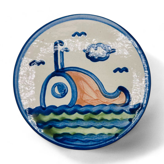 6.5" Hand-Painted Blue Whale Coaster Set - Nautical Stoneware Collection
