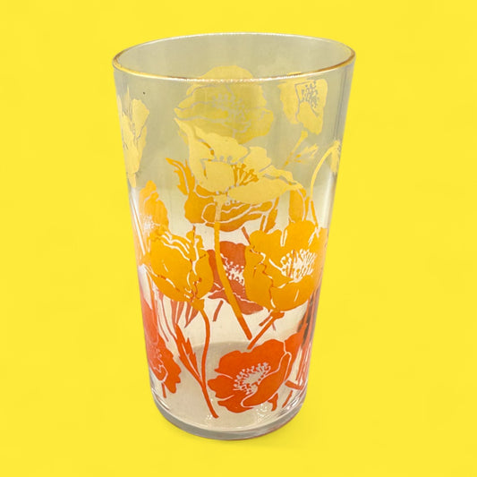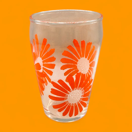 3 Dominion Glass Flower Power Juice Cups – Vintage 60s Orange Floral