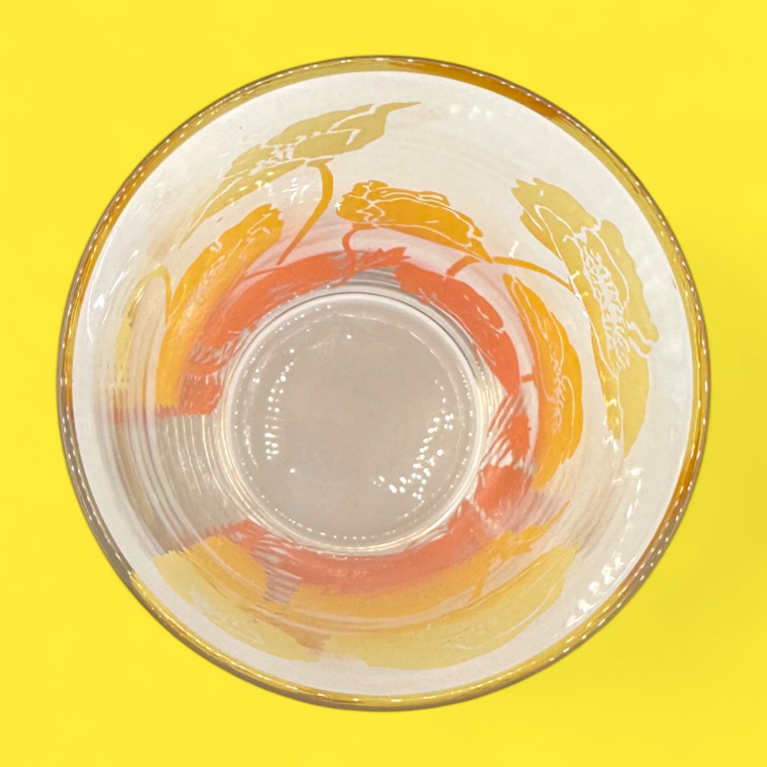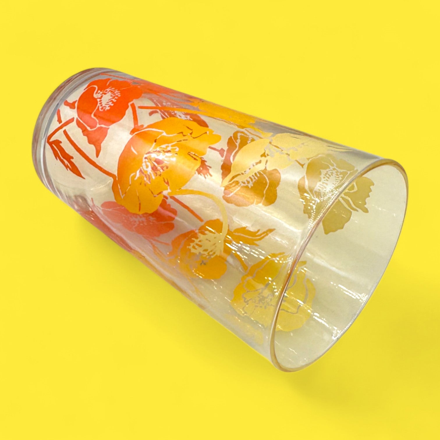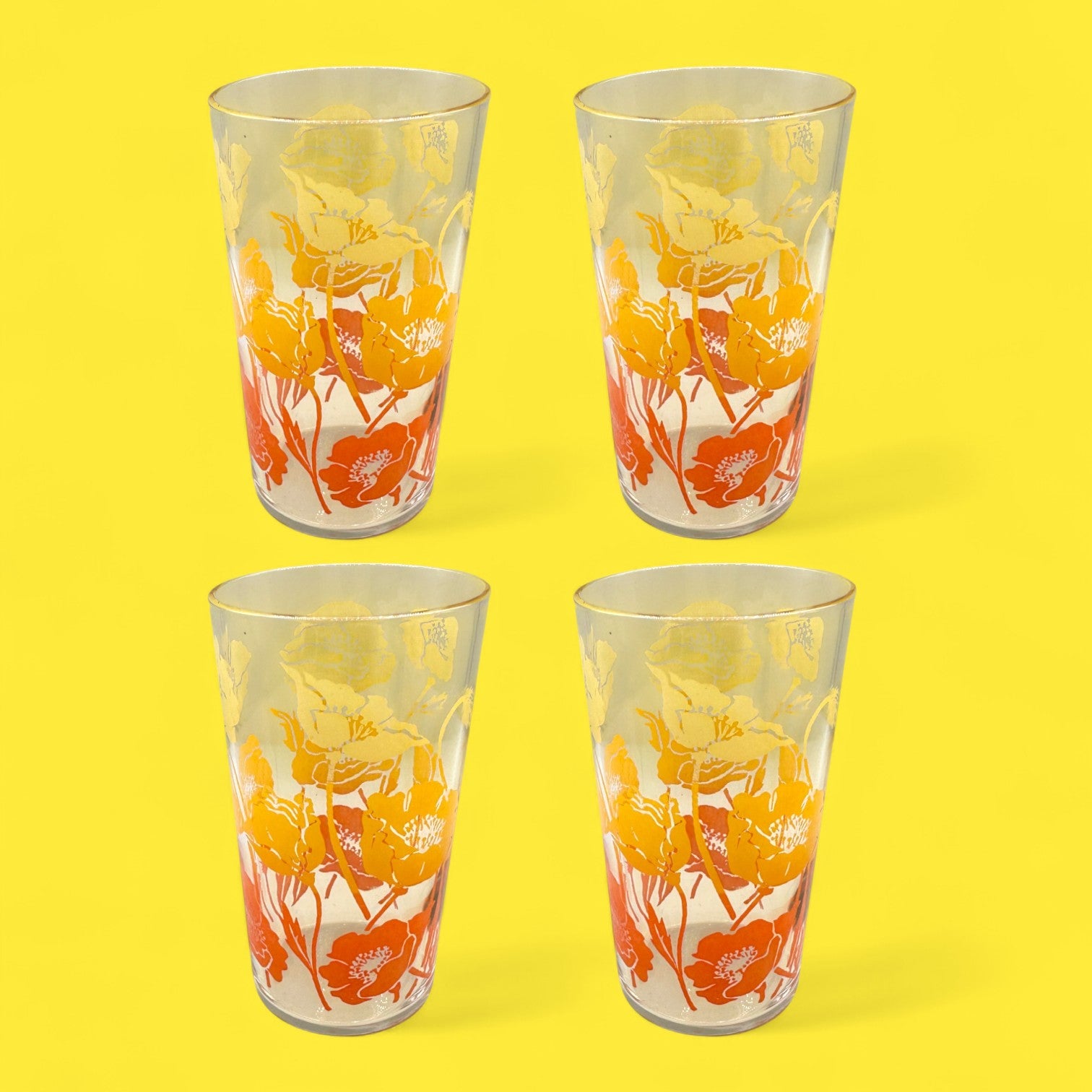 Brighten your mornings and elevate your vintage glassware collection with these Anchor Hocking Morning Glory juice glasses – a groovy nod to 70s retro style.