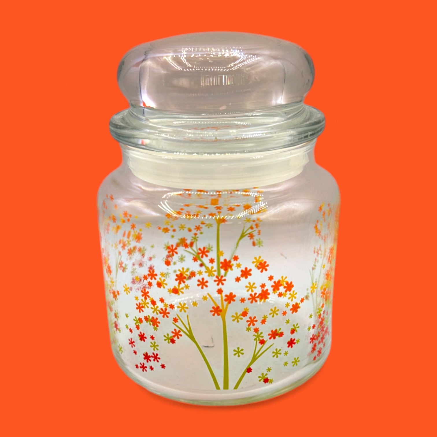 Anchor Hocking Vintage Glass Canister with Lid – Autumn Flowers Design 5.5”