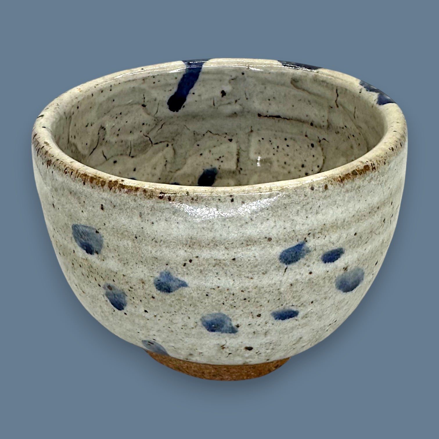 Blue Dot Ceramic Grey Bowl – Handcrafted Studio Pottery