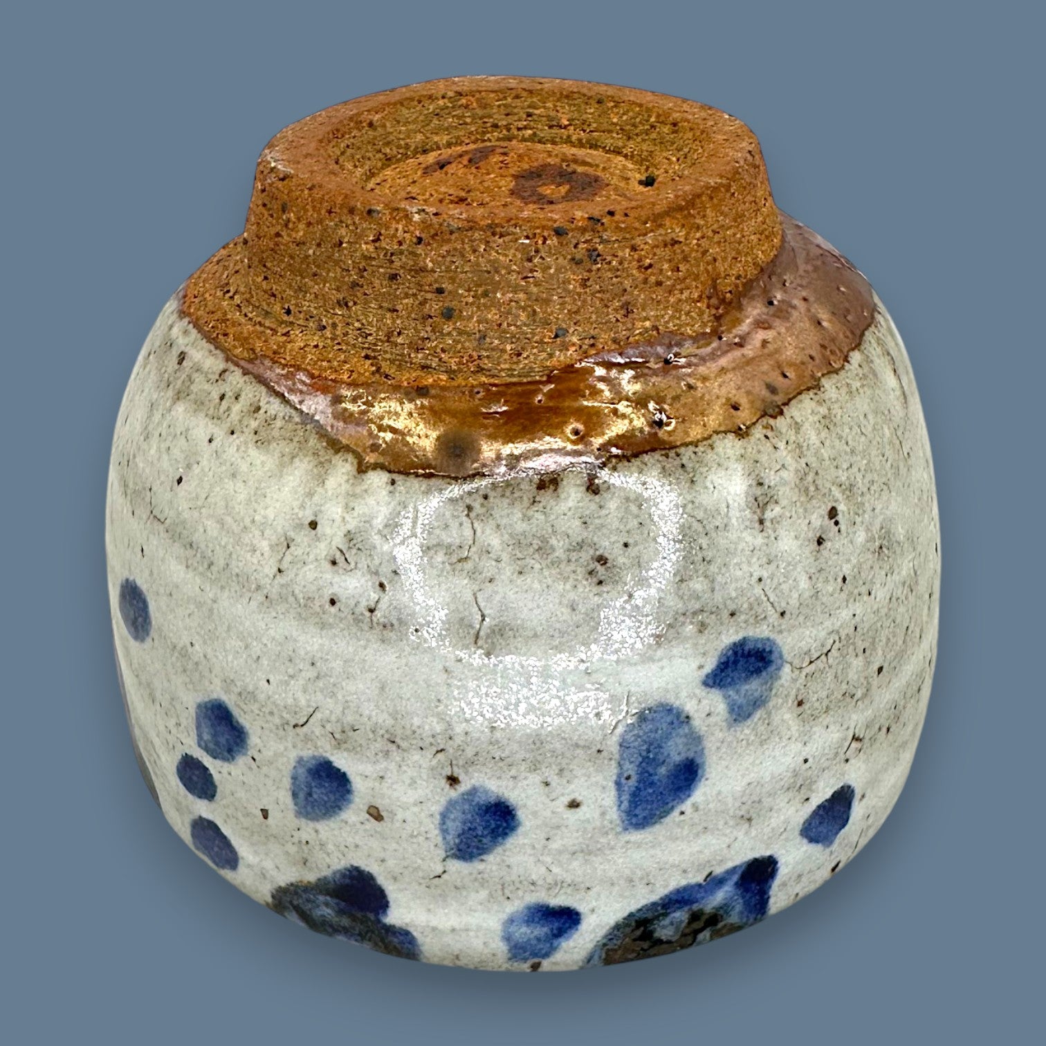 This Blue Dot Ceramic Bowl is a stunning example of handmade artistry, featuring an earthy glaze with blue dot brushwork on a natural clay base. The contrast between the smooth, glossy white-gray glaze and the rustic, raw bottom reveals its hand-thrown craftsmanship. Perfect as a decorative accent, serving bowl, or a unique collector’s piece, it embodies a beautiful balance of simplicity and texture.