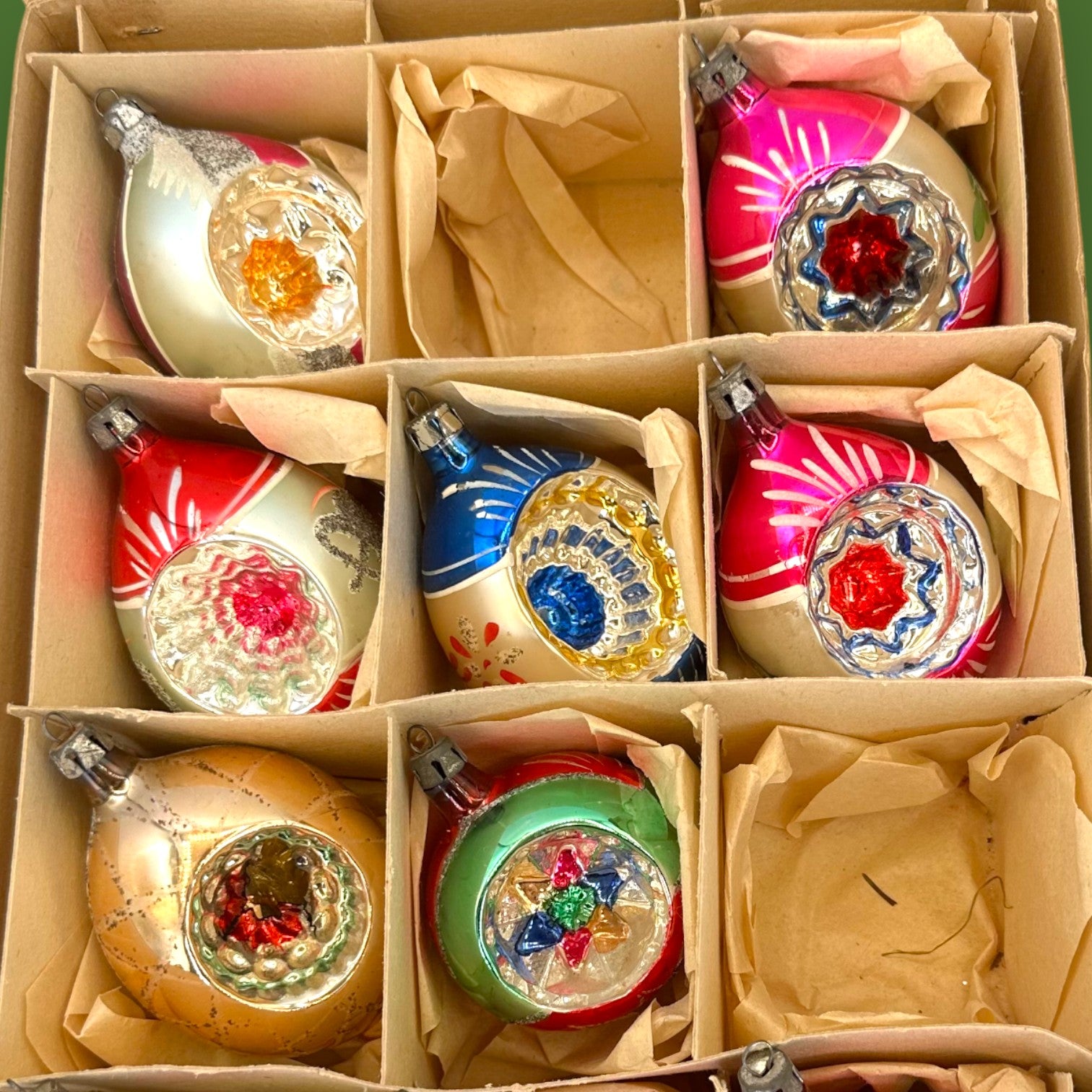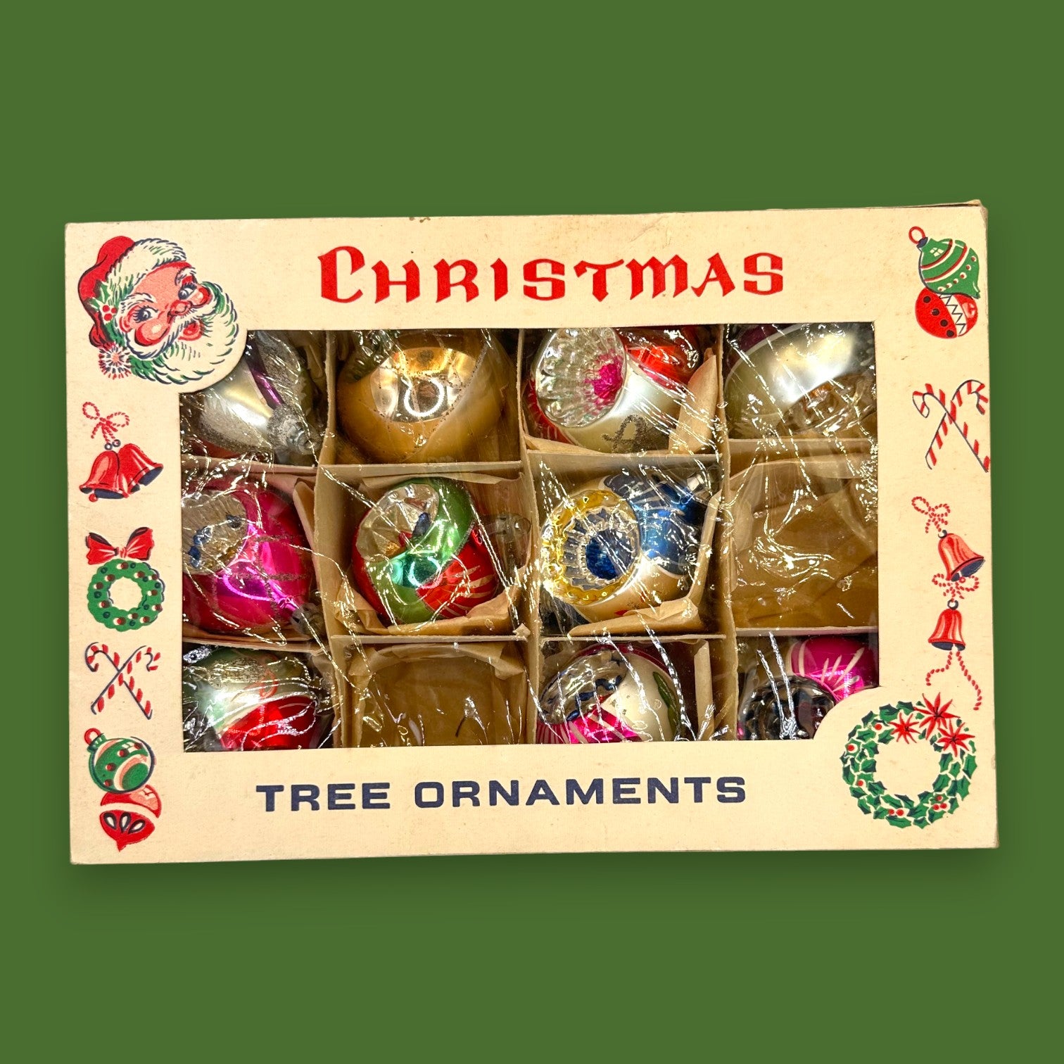 Christmas Tree Ornaments: Vintage Murcury Glass Indents Boxed Set 2.5" Ball 🎅