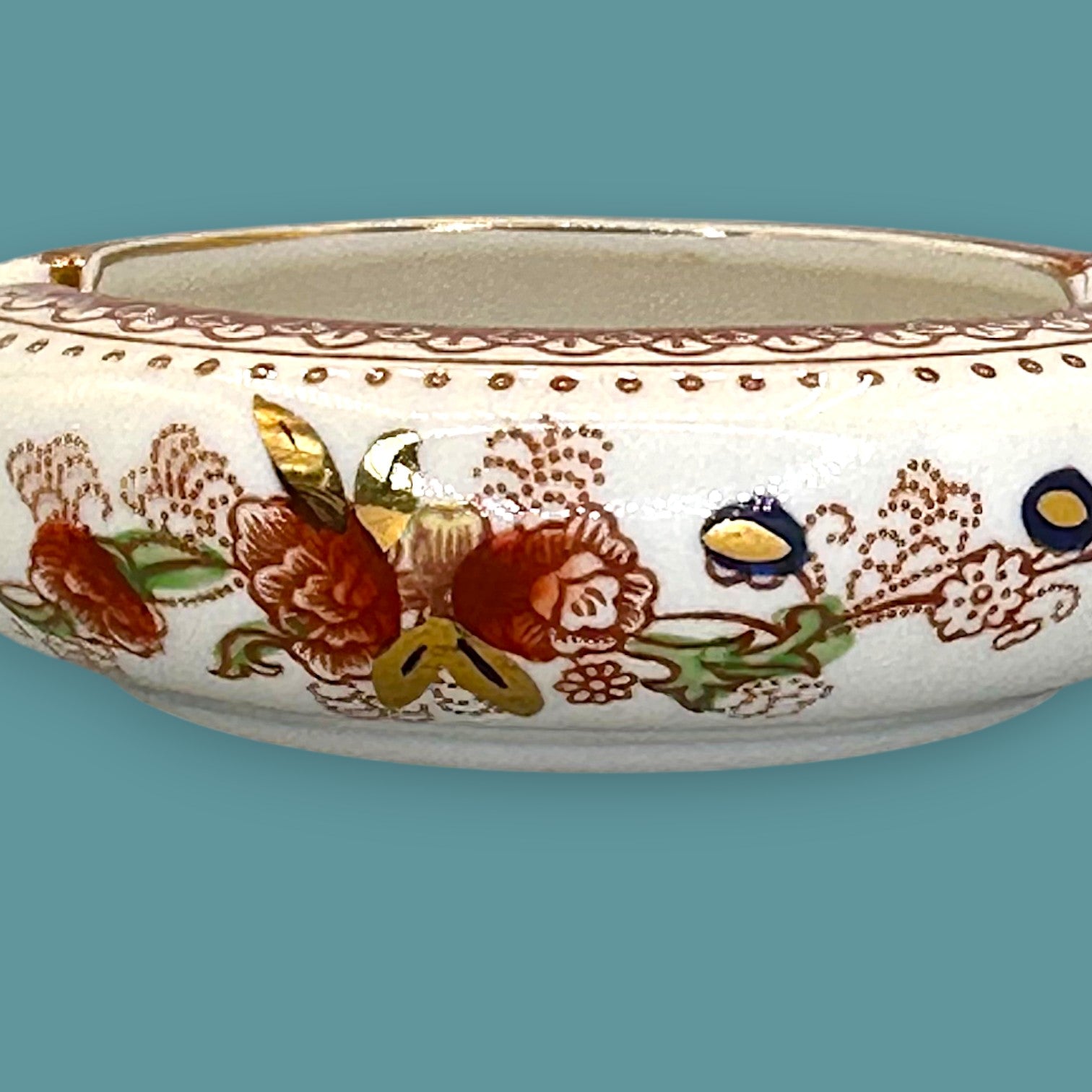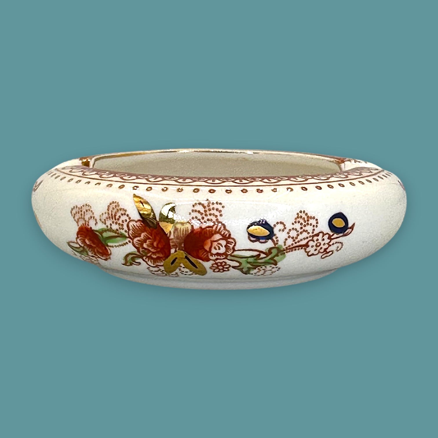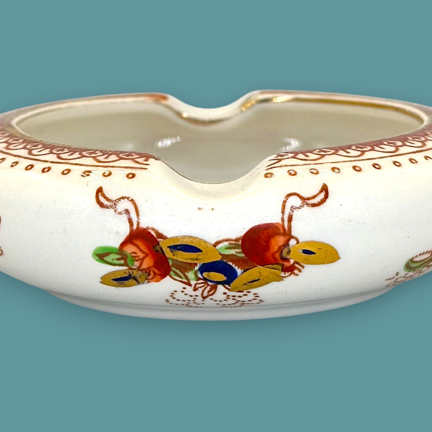 This vintage ceramic ashtray from the Crofton Airport Hotel in Dublin, Ireland, captures the charm of mid-20th-century hospitality memorabilia. Made by Arklow Pottery in the Republic of Ireland, it features intricate floral patterns in warm brown and green tones, accented with gold detailing around the rim. The center proudly displays the Crofton Airport Hotel logo, making it both a collectible and a piece of Irish hotel history.