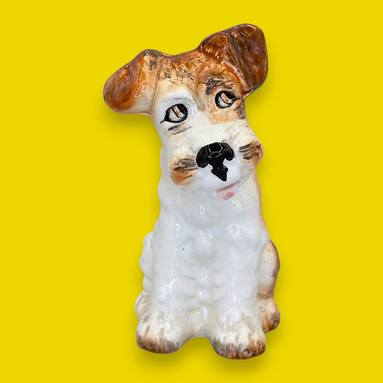 This delightful terrier figurine is a charming slice of mid-century British ceramic art that will bring a touch of playful elegance to any room. It will make the buyer feel a warm sense of nostalgia and an instant connection to a beloved pet. A wonderful and unique gift for dog lovers, especially those who appreciate classic Sylvao or dog-themed collectibles.