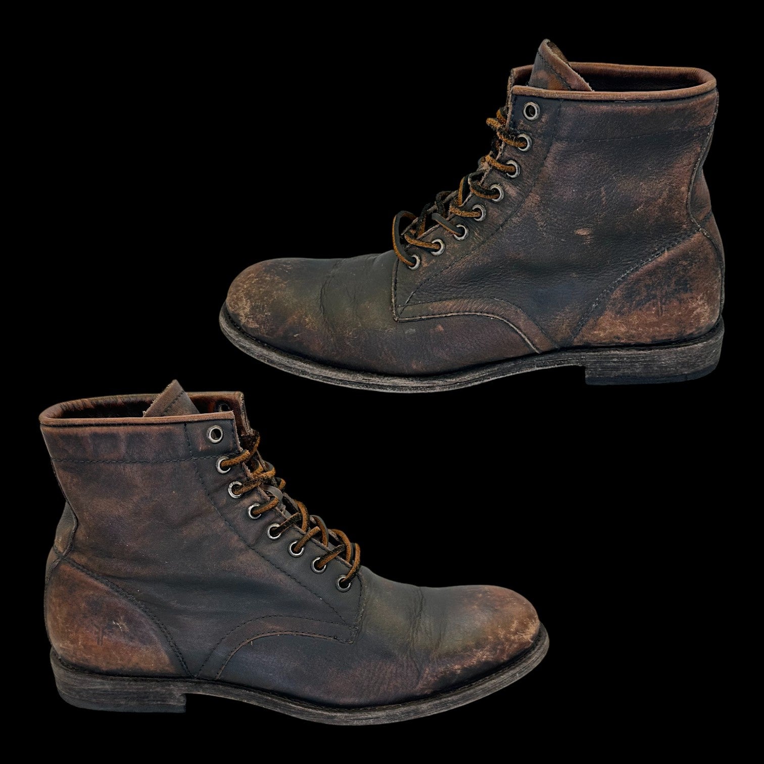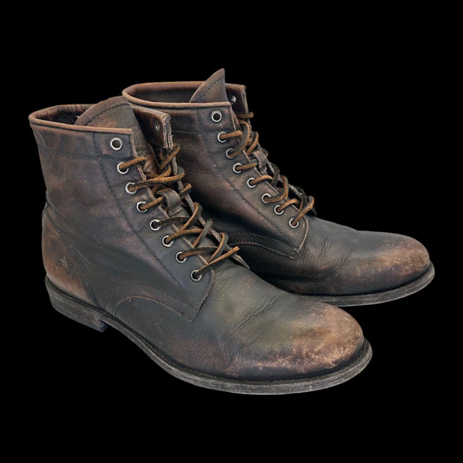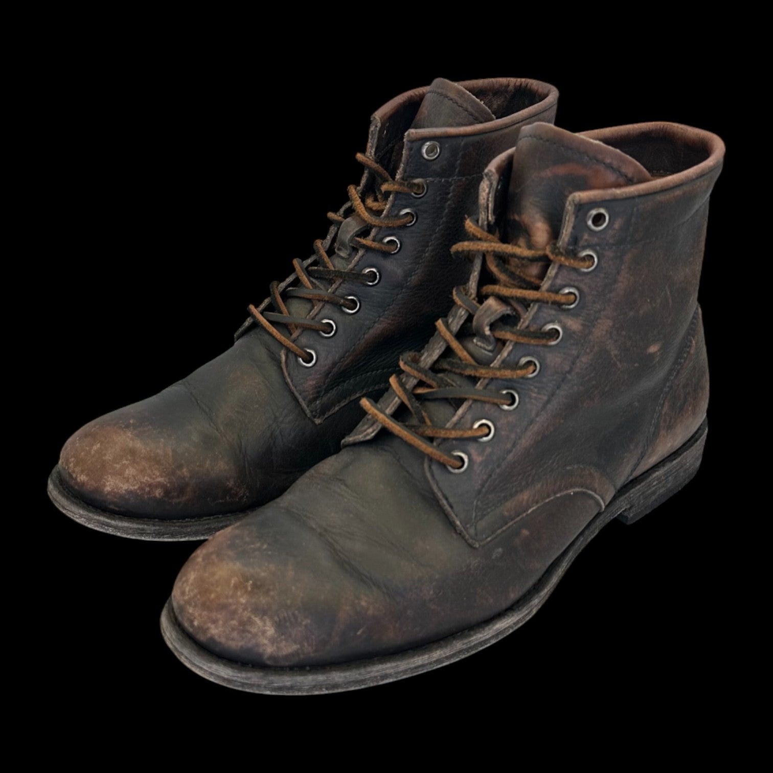 Freye Tyler Lace Up Boots - Black / Brown Distressed Leather 8.5 Mens