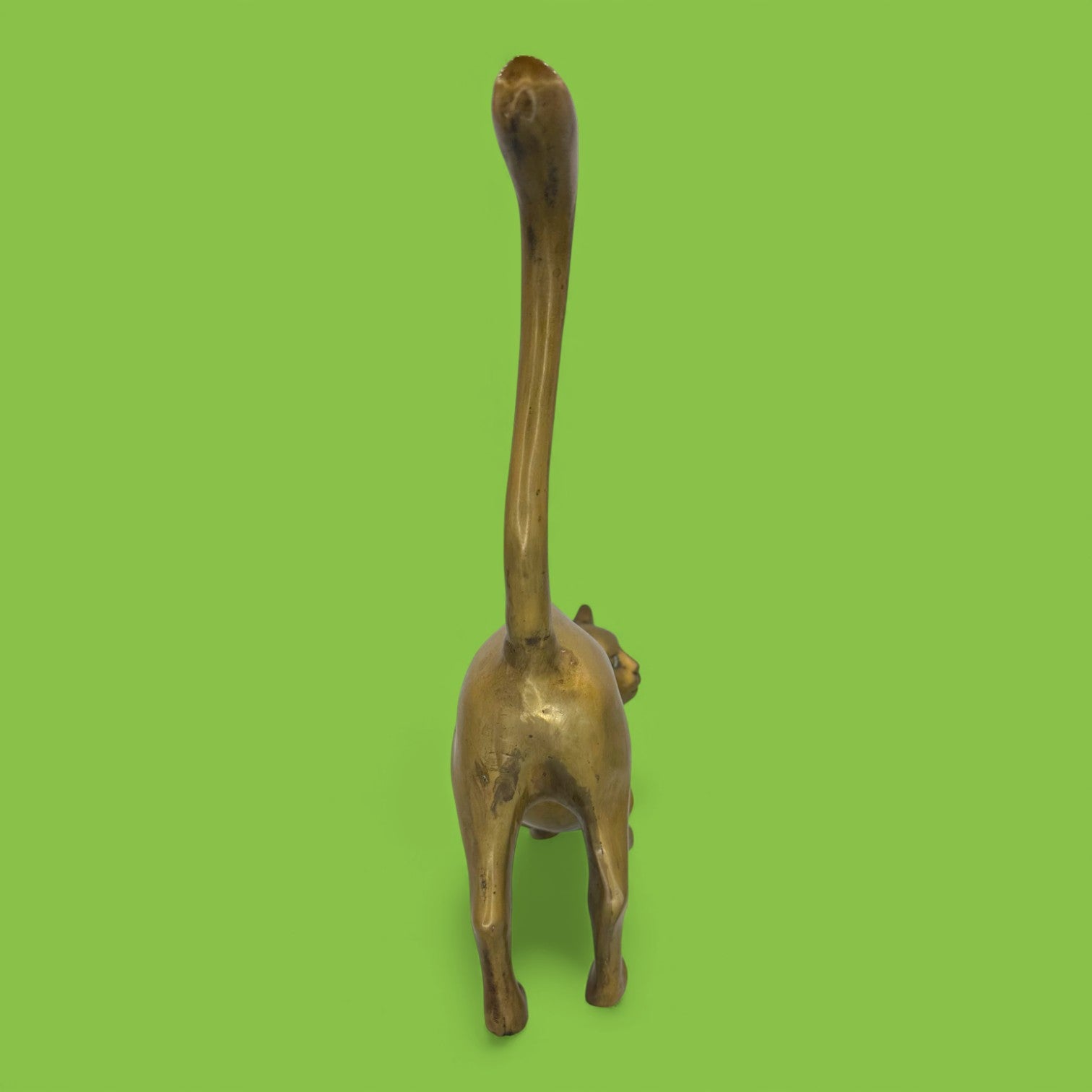 This stunning brass cat statue captures the perfect balance of feline elegance and playful curiosity. Crafted with remarkable attention to form and posture, the cat’s elongated body and raised tail evoke a sense of motion and life. The piece’s naturally aged patina adds warmth and authenticity, making it an ideal accent for shelves, desks, or entryways. A refined representation of charm and character, this statue embodies artistry and craftsmanship in one solid form.