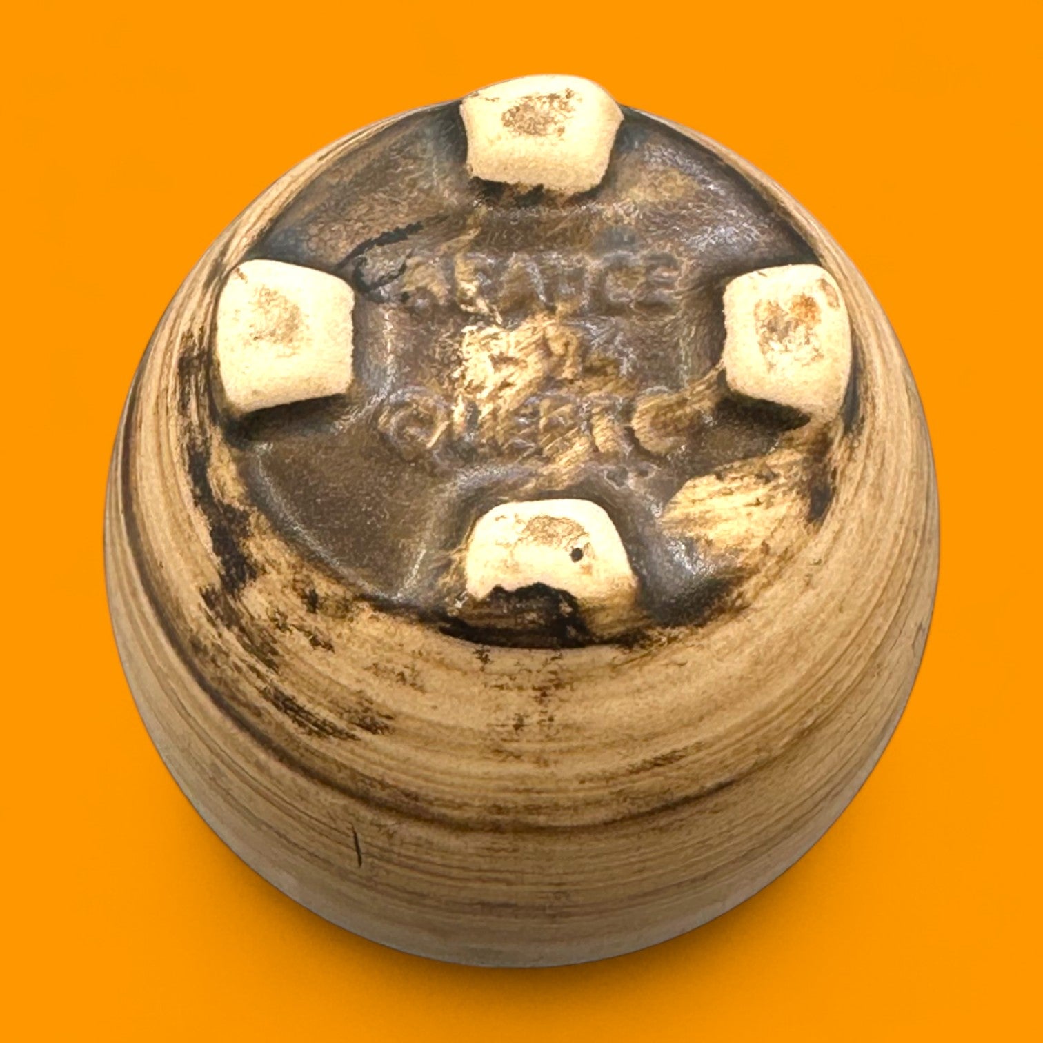 This vintage Canadian studio pottery vase captures the timeless appeal of midcentury modern design. Its striking two-tone finish blends a natural earthy beige with a rich orange-brown drip glaze that deepens toward the rim. Crafted with care, the vase reflects the handmade character of Canadian pottery, offering both warmth and sculptural beauty. A collectible piece that stands out in any décor.