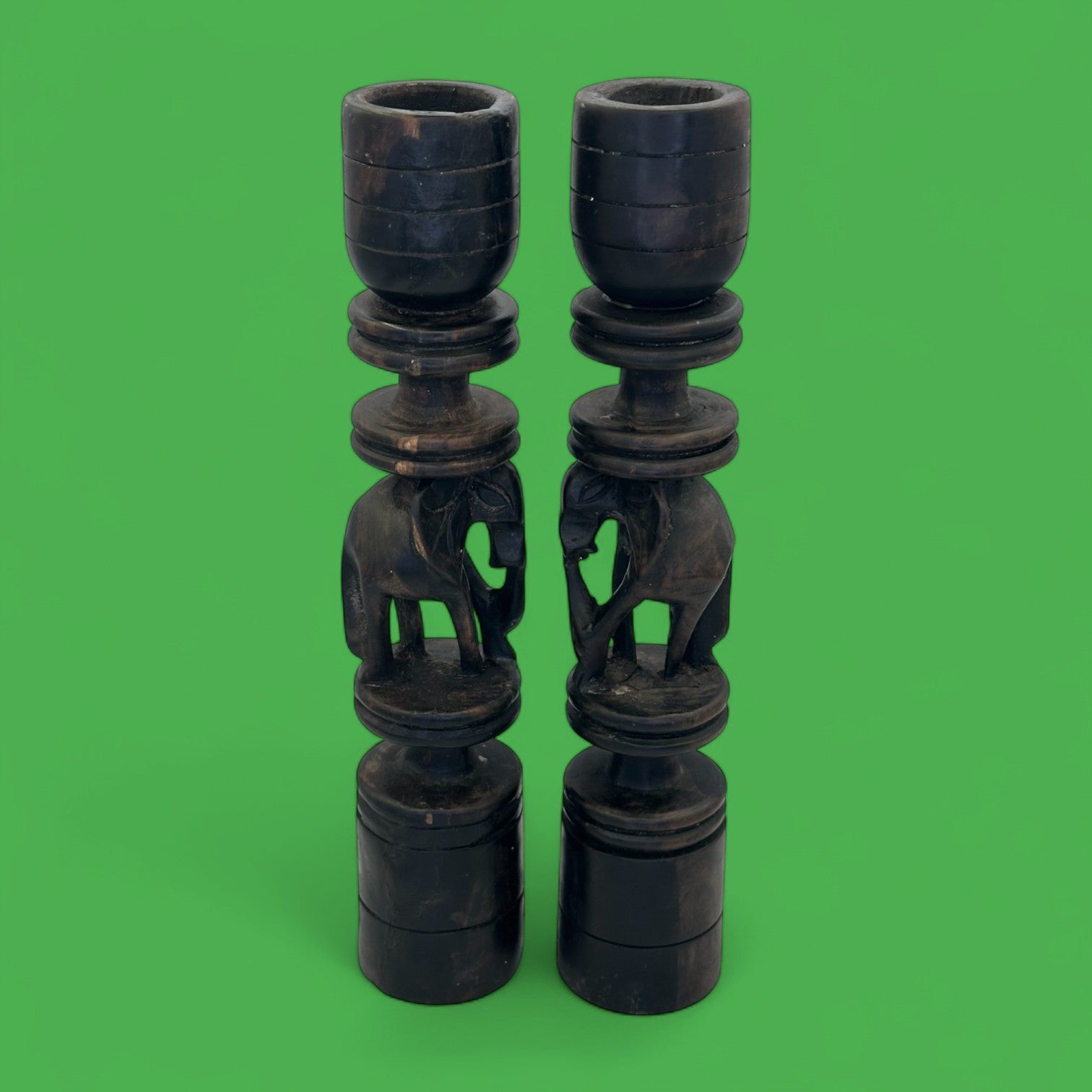 Pair of Hand-Carved African Elephant Candle Holders – Hardwood Tribal Art