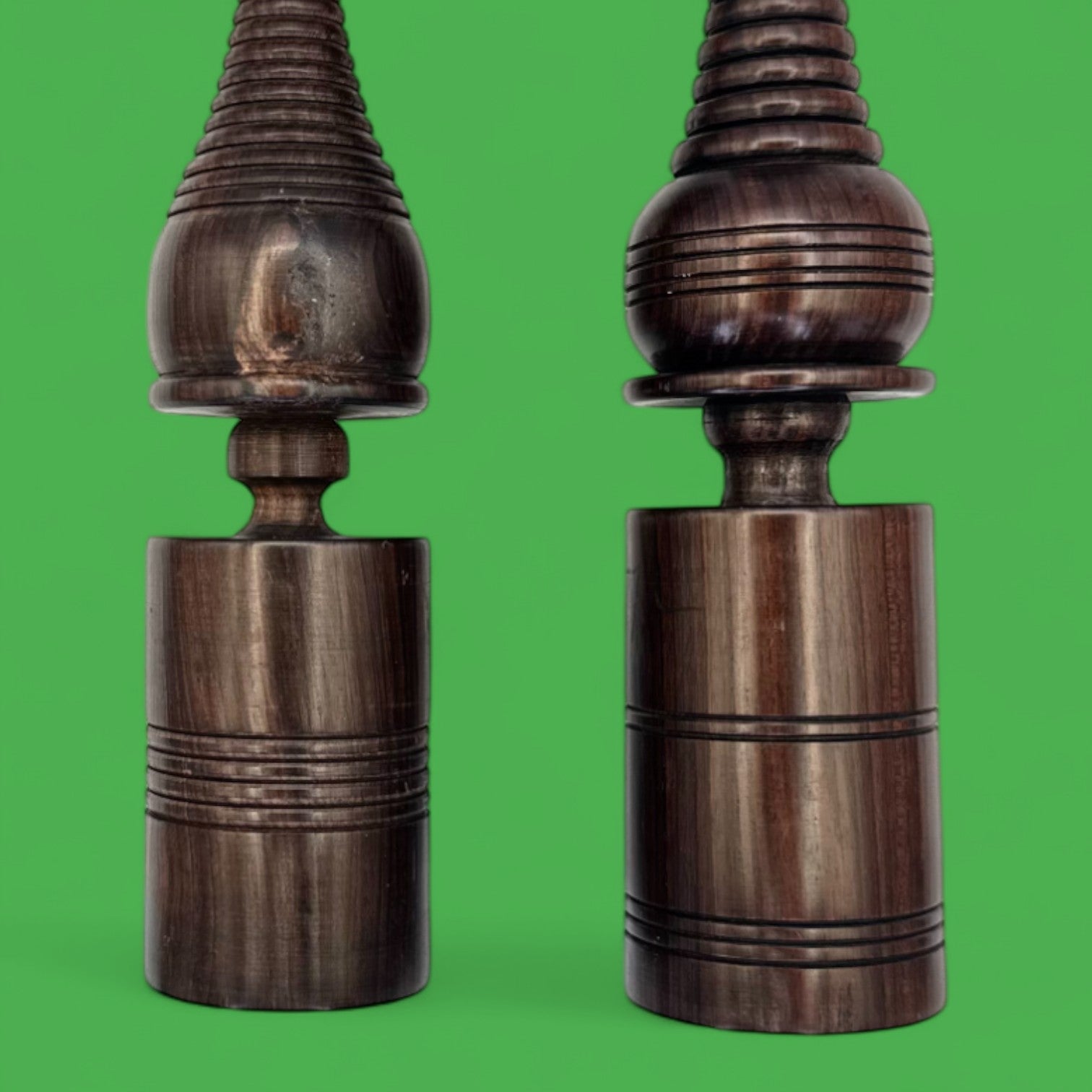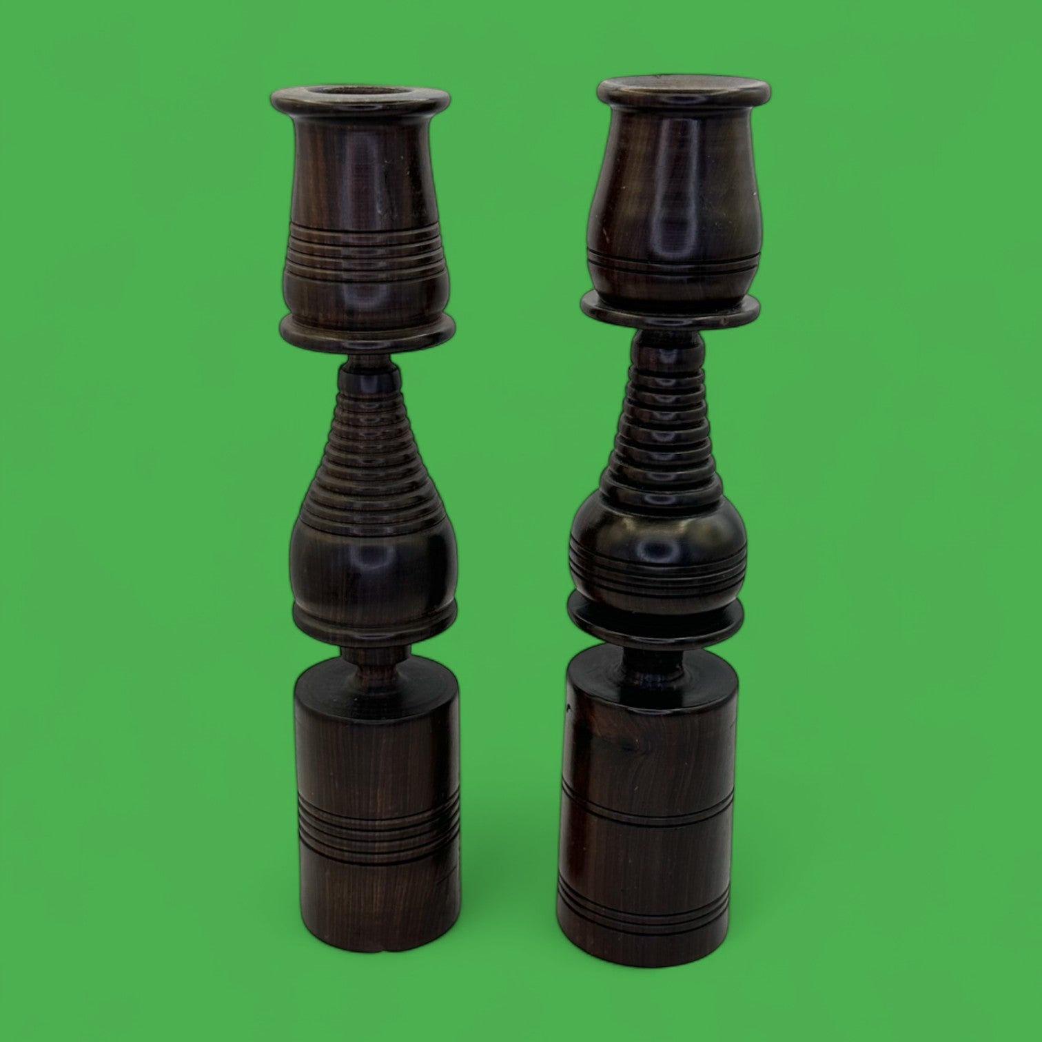 Pair of Vintage Hardwood Candle Holders – Hand-Turned Dark Wood MCM