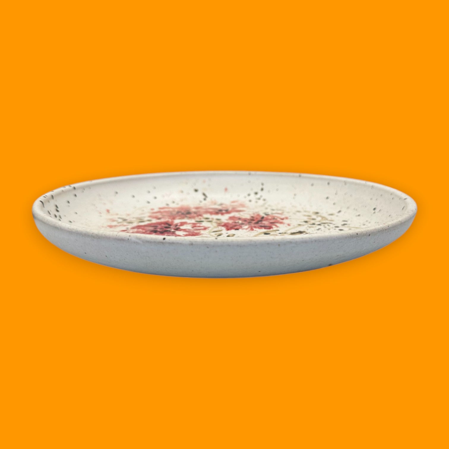 Vintage Stoneware Plate – Hand-Painted Red Floral Design (Five Flowers)