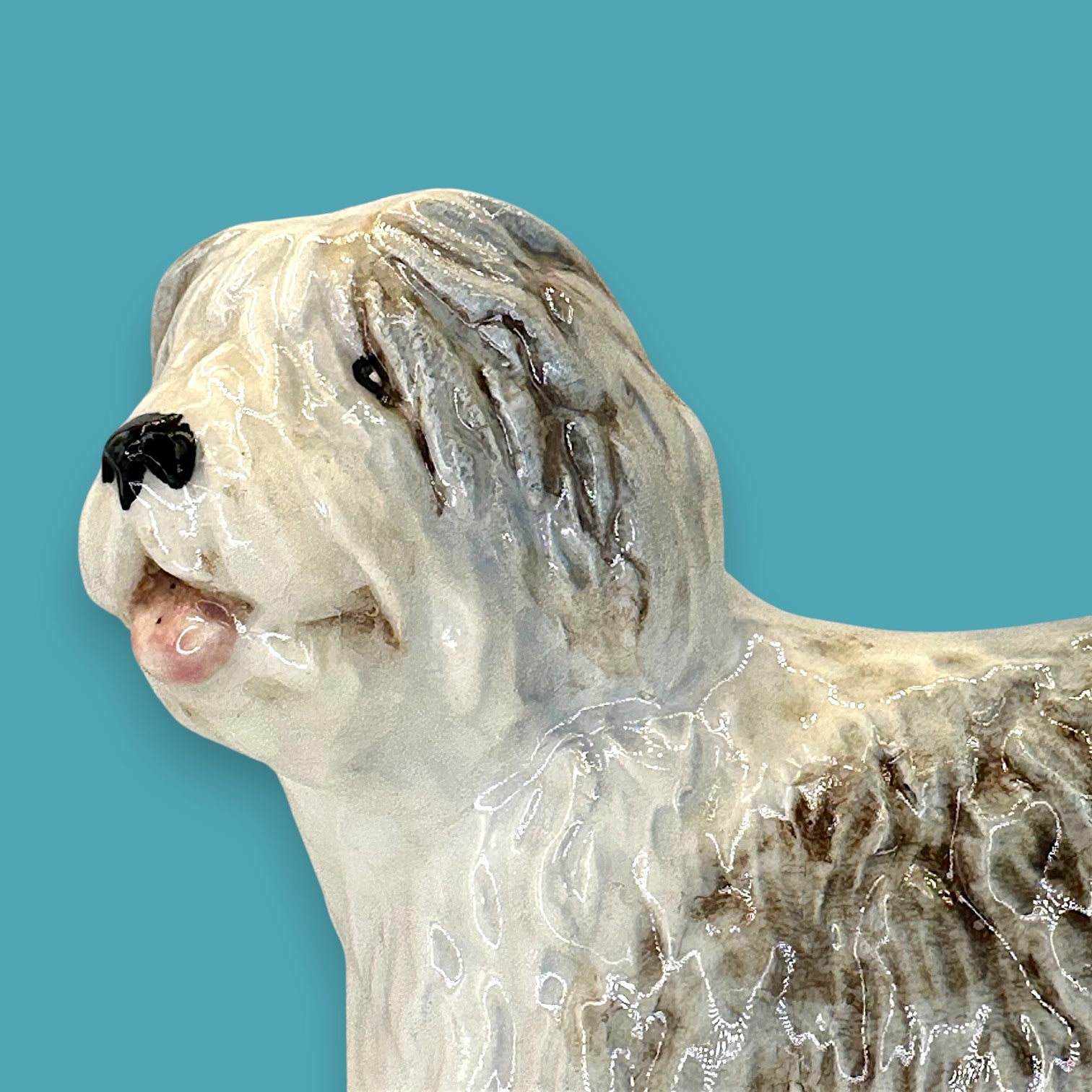 • Textured Molded Design – Captures the lifelike curls and charm of the Old English Sheepdog.