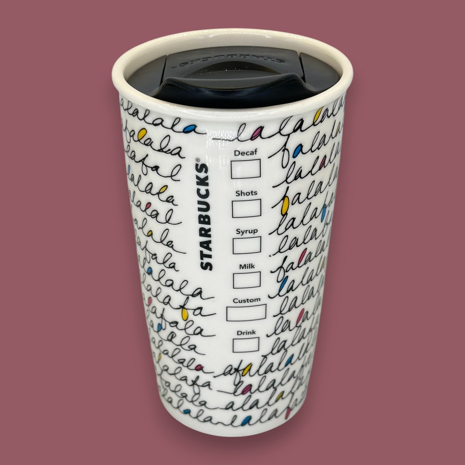 Bring a touch of nostalgia and holiday cheer to your daily routine with this rare, collectible Starbucks Fa La La La La Holiday 2011 ceramic travel tumbler!