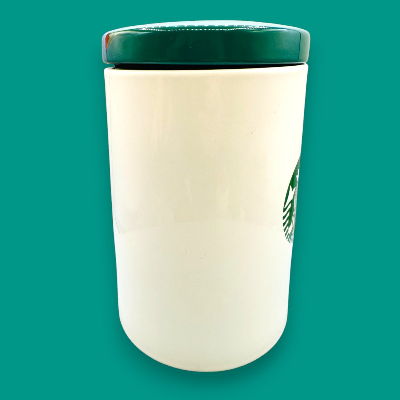 This vintage (c.2012) Starbucks ceramic canister blends practical storage with collectible charm. Featuring the iconic green Mermaid logo on a clean white background, it’s designed with a vacuum-sealed green lid to keep your coffee beans, tea, or pantry items fresh. A true Starbucks collectible that doubles as functional kitchenware and stylish display.