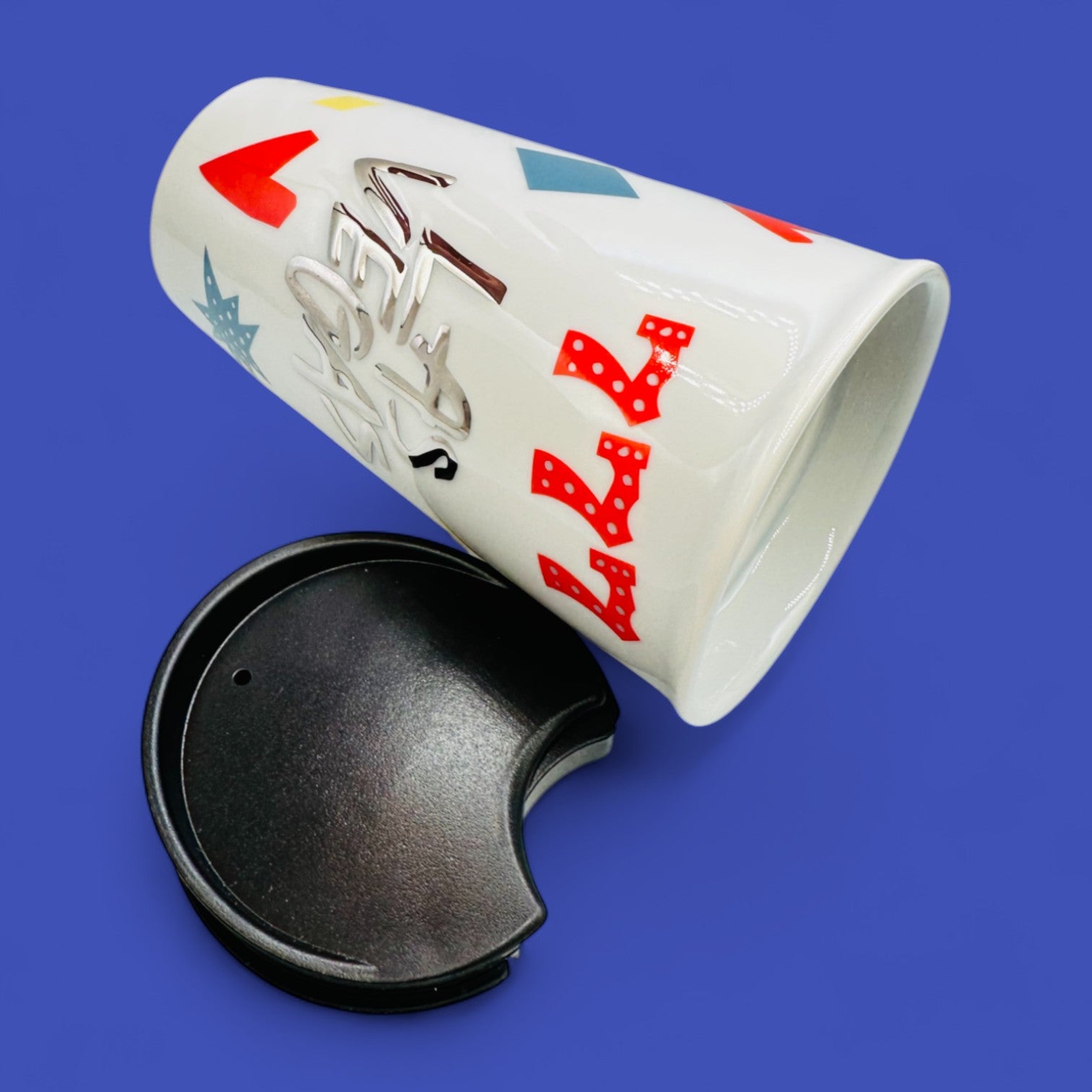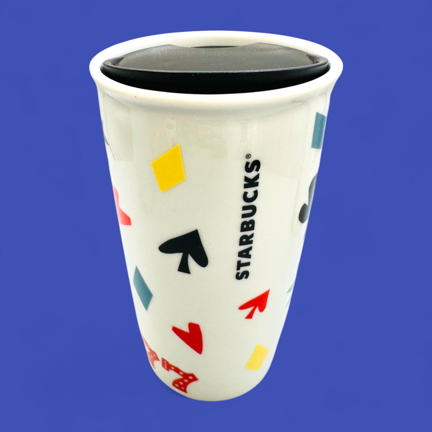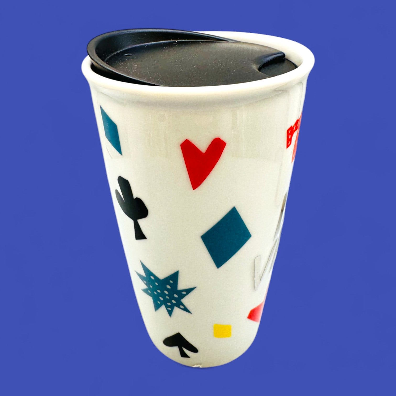 Celebrate the excitement of Las Vegas with this collectible Starbucks travel tumbler featuring bold red “777” graphics, playful card-suit icons, and modern typography. Its glossy cream finish and double-walled ceramic design help keep your drink at temperature, while the fitted black lid makes it perfect for travel. Compact yet stylish, this 10 fl oz (296 mL) tumbler is a fun nod to the city of lights and luck.