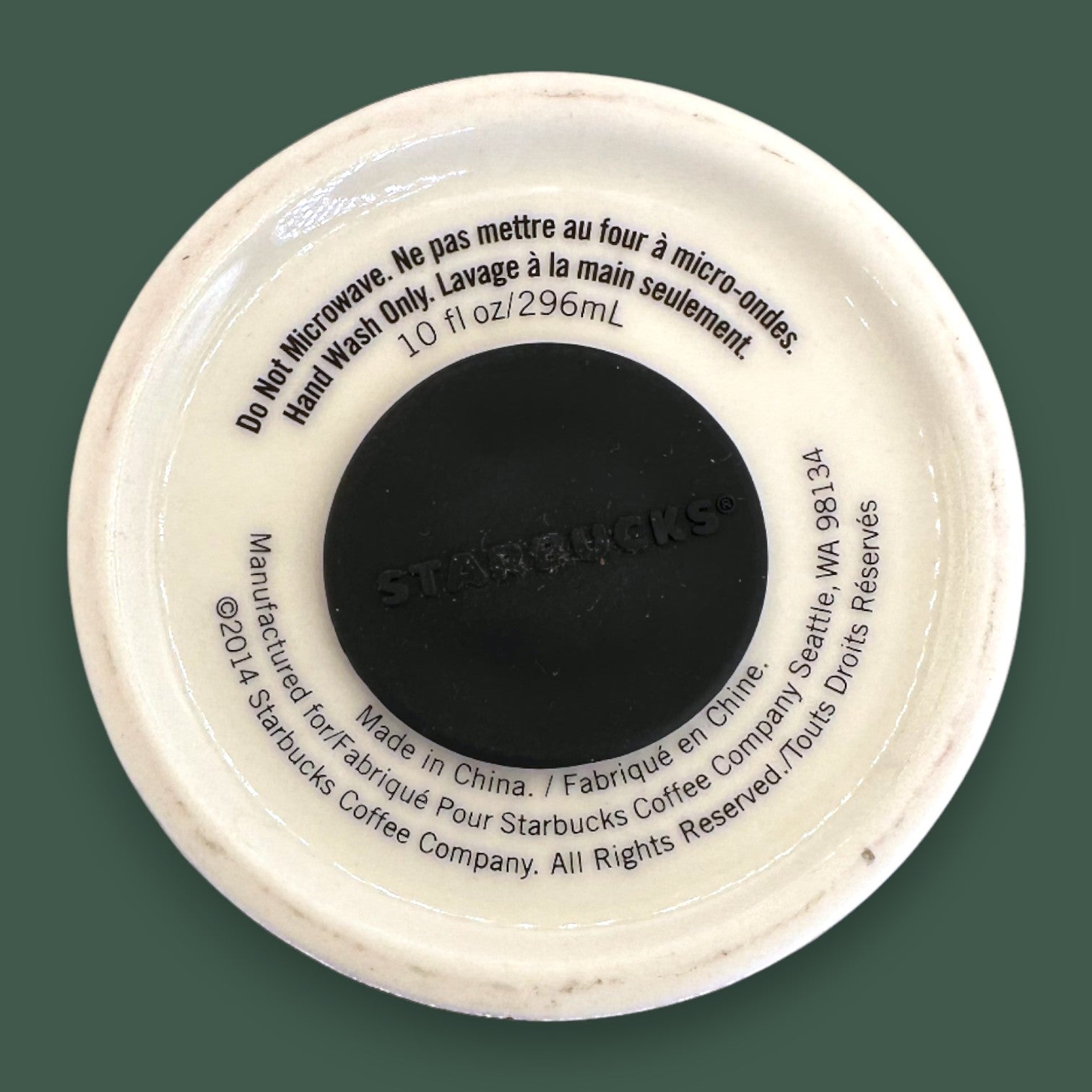 Crafted from quality ceramic, this mug features a double-wall design to help insulate your hot beverages on the go. The mug is completed with a coordinating ceramic press-in lid, which securely rests in the cup's rim. Its unique design and vintage status from 2014 make this Starbucks mug a valuable and stylish addition to any collection, ensuring you enjoy your coffee with a dash of distinctive flair.