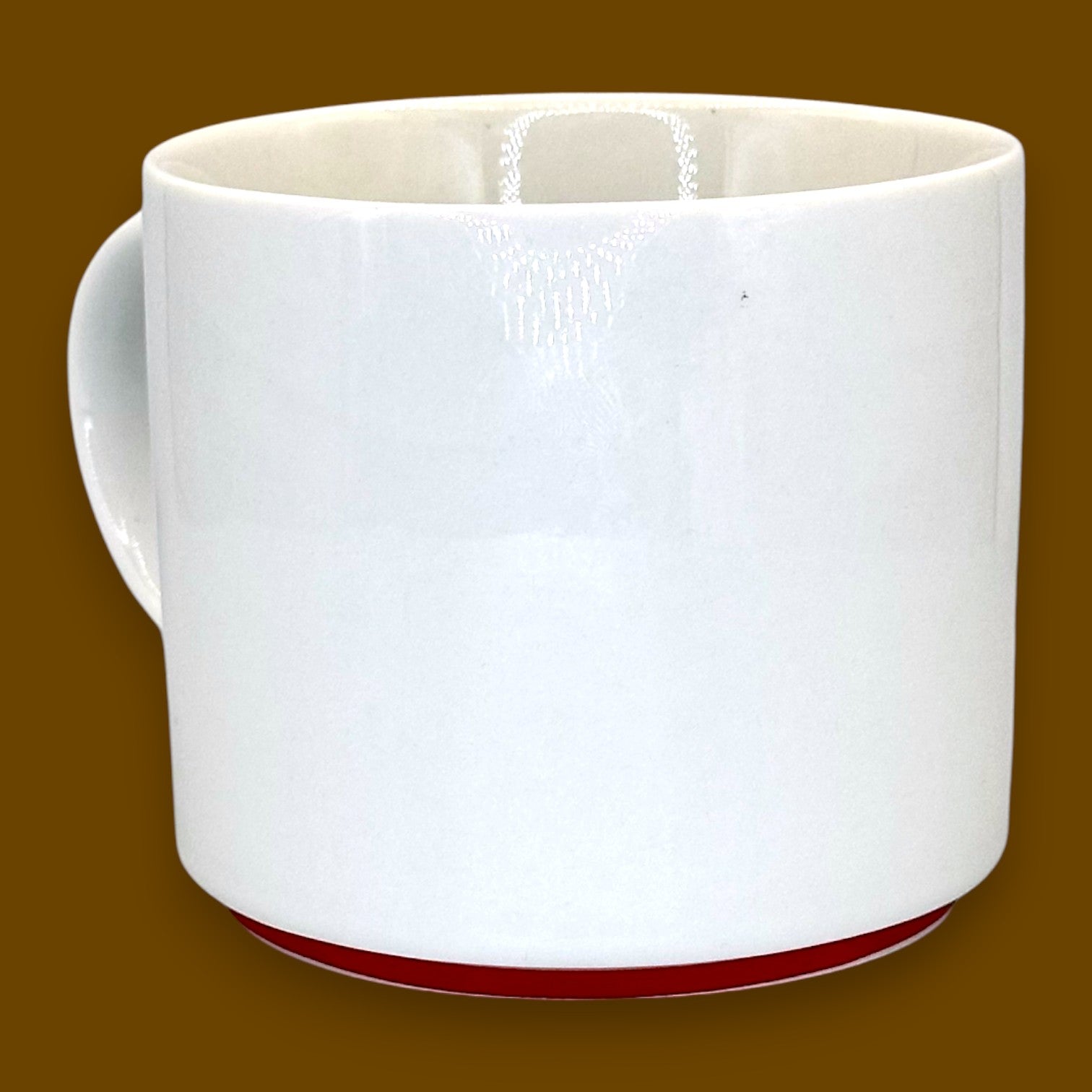 This 2012 Starbucks mug blends minimalist design with a warm touch of vintage charm. The glossy white ceramic surface feels smooth and refined, accented by a metallic gold vertical “Starbucks” imprint that brings a quiet sense of luxury. A bold red ring at the base adds contrast, giving the mug a distinctive look that stands out in any collection. Ideal for everyday coffee moments or for collectors searching for a meaningful piece of Starbucks history, this mug embodies both form and function.