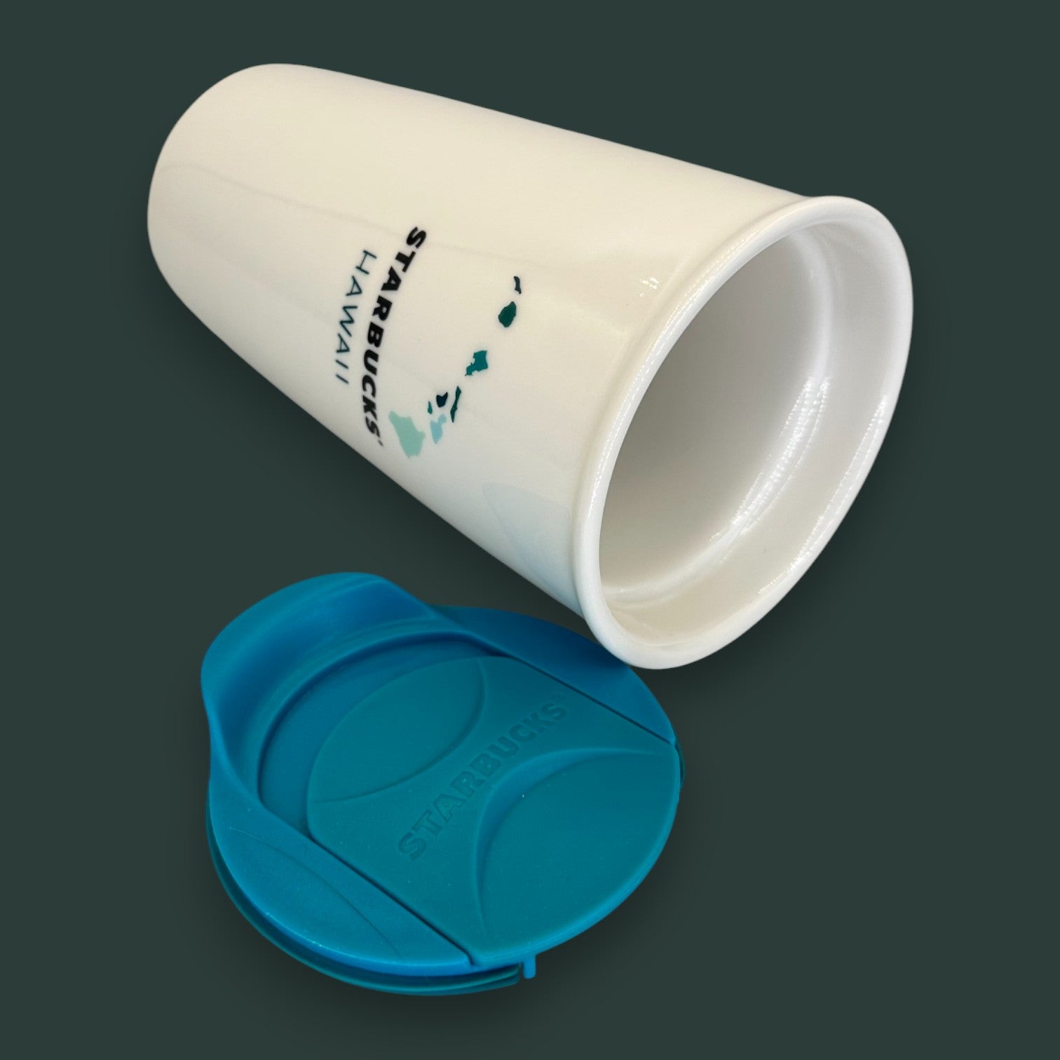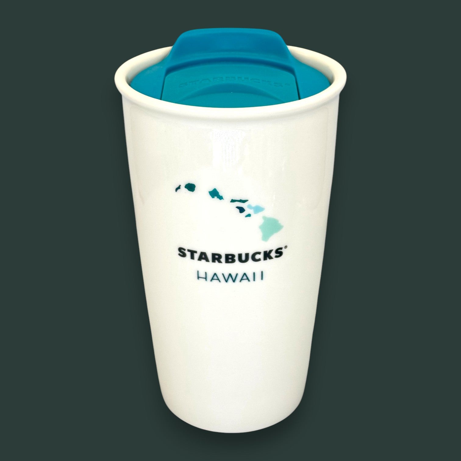 Starbucks collectible, Hawaii exclusive, double-wall ceramic, teal silicone lid, island souvenir, ceramic travel mug, reusable coffee cup, Hawaiian islands, limited edition, premium drinkware, travel essential, local collection