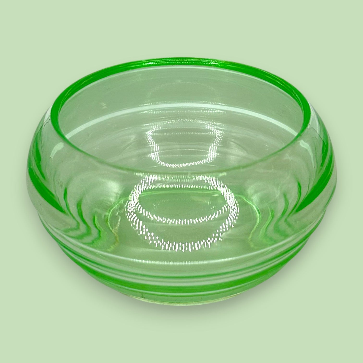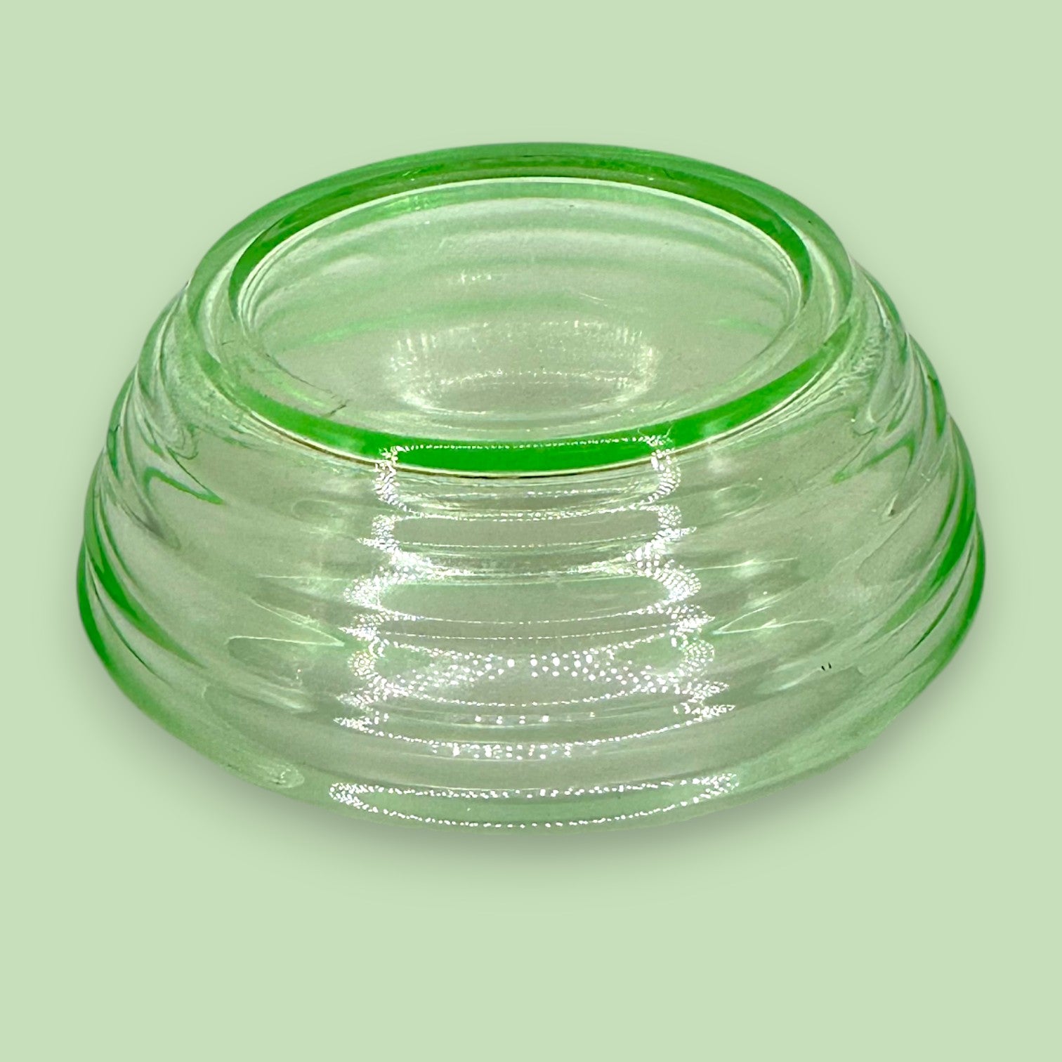 Vintage Green Uranium Glass 5.3" Bowl | Ribbed Art Deco Design