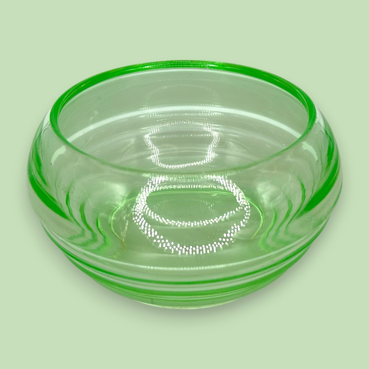 A true collectible that glows with history and style — this uranium glass bowl adds a touch of radiant vintage charm to any setting.