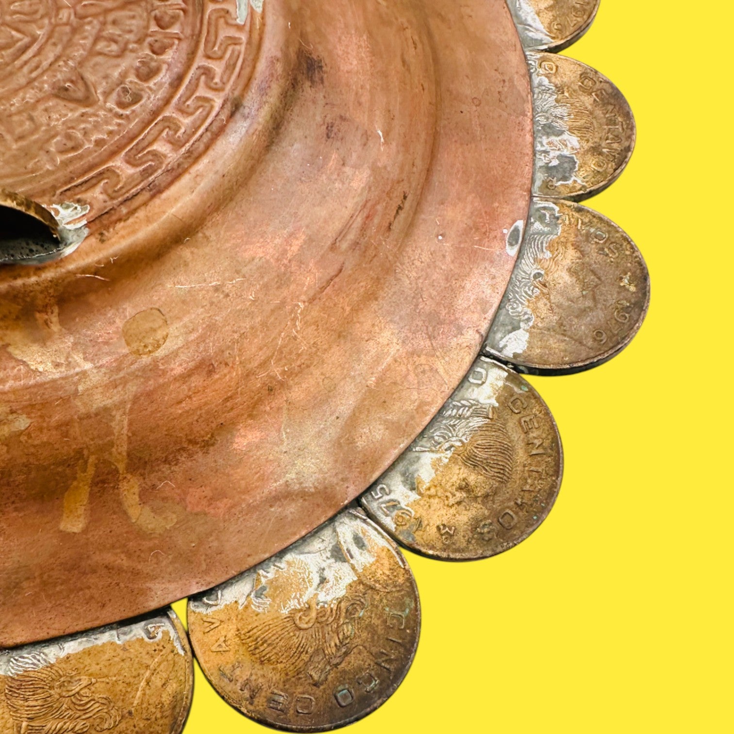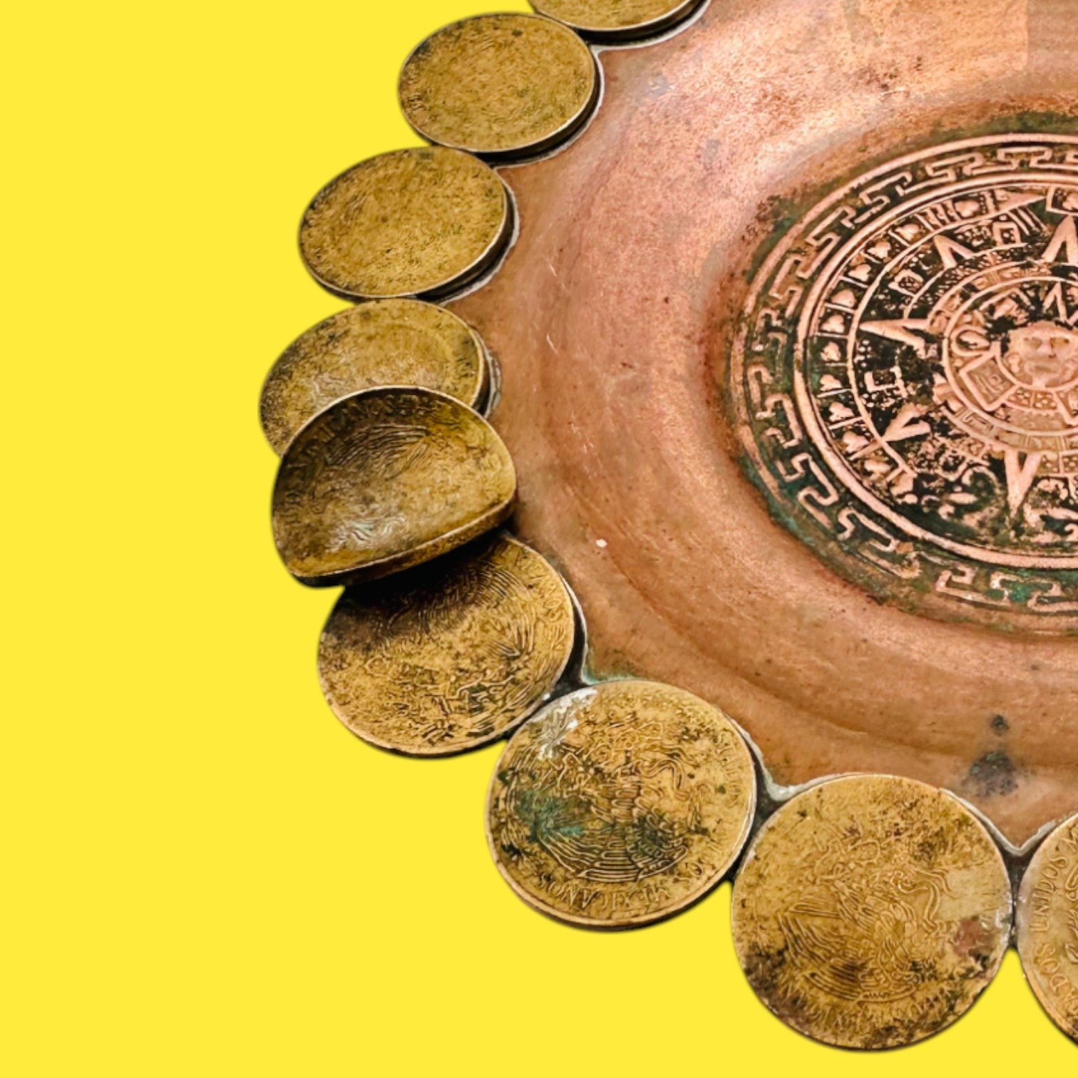 Vintage 1960s Mexican Coin Ashtray - Folkart - 1975-77 Coins