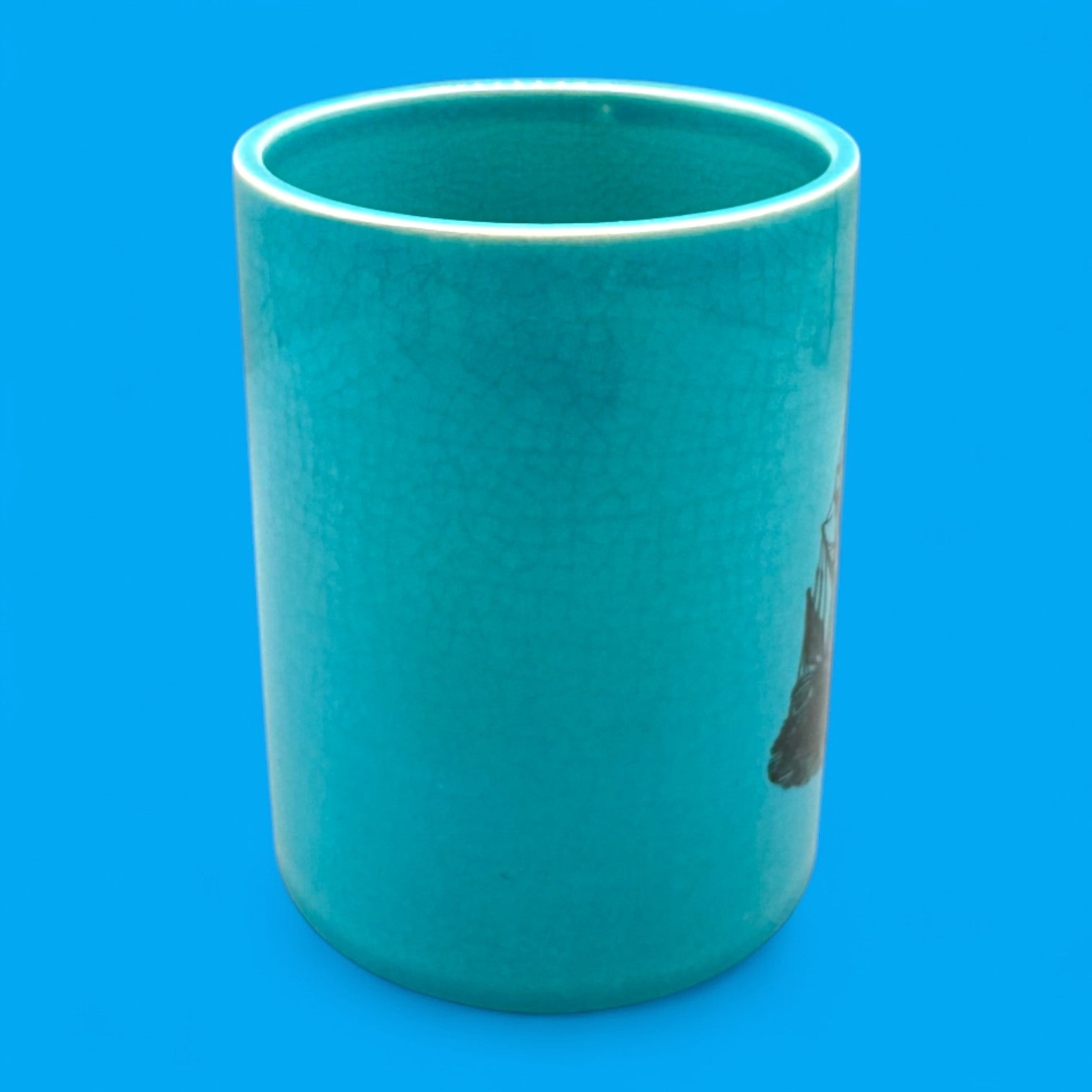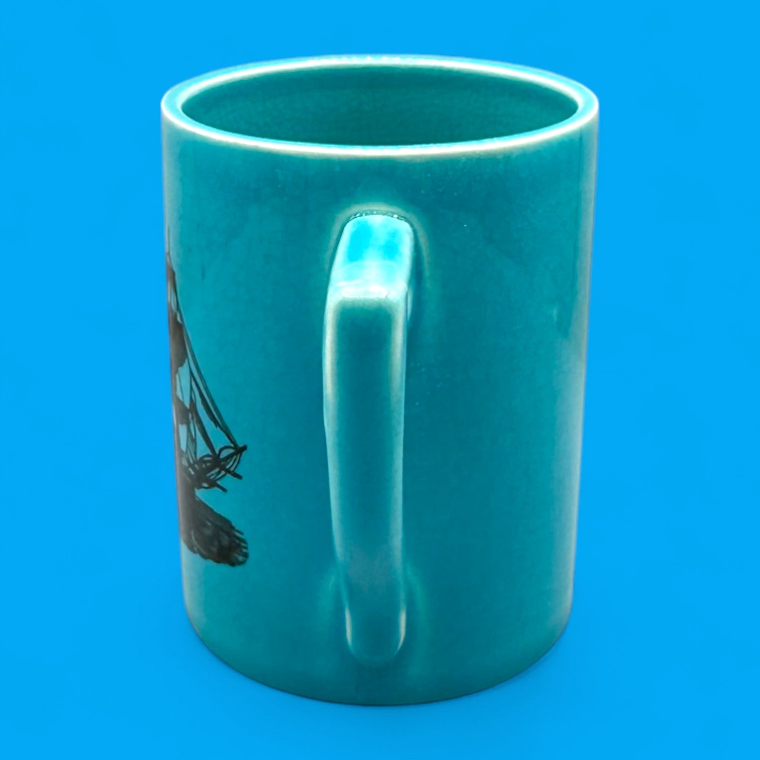 This vintage 1960’s Portmeirion Pottery mug showcases a bold nautical design with a detailed black illustration of a classic sailing ship. Finished in a striking turquoise glaze with a fine crackle effect, it carries the unmistakable charm of English craftsmanship. A true collector’s piece that doubles as a functional and stylish replacement mug for your set.