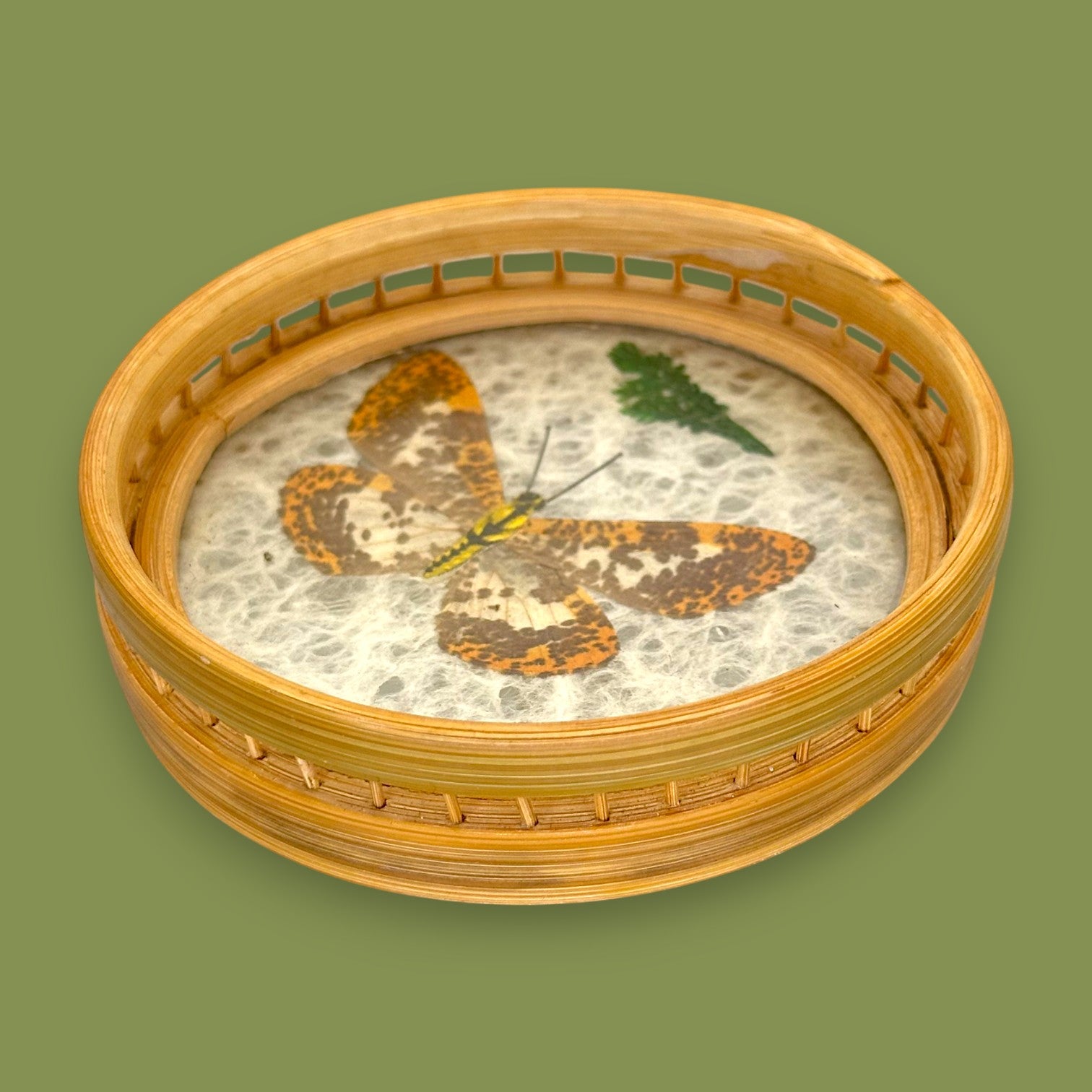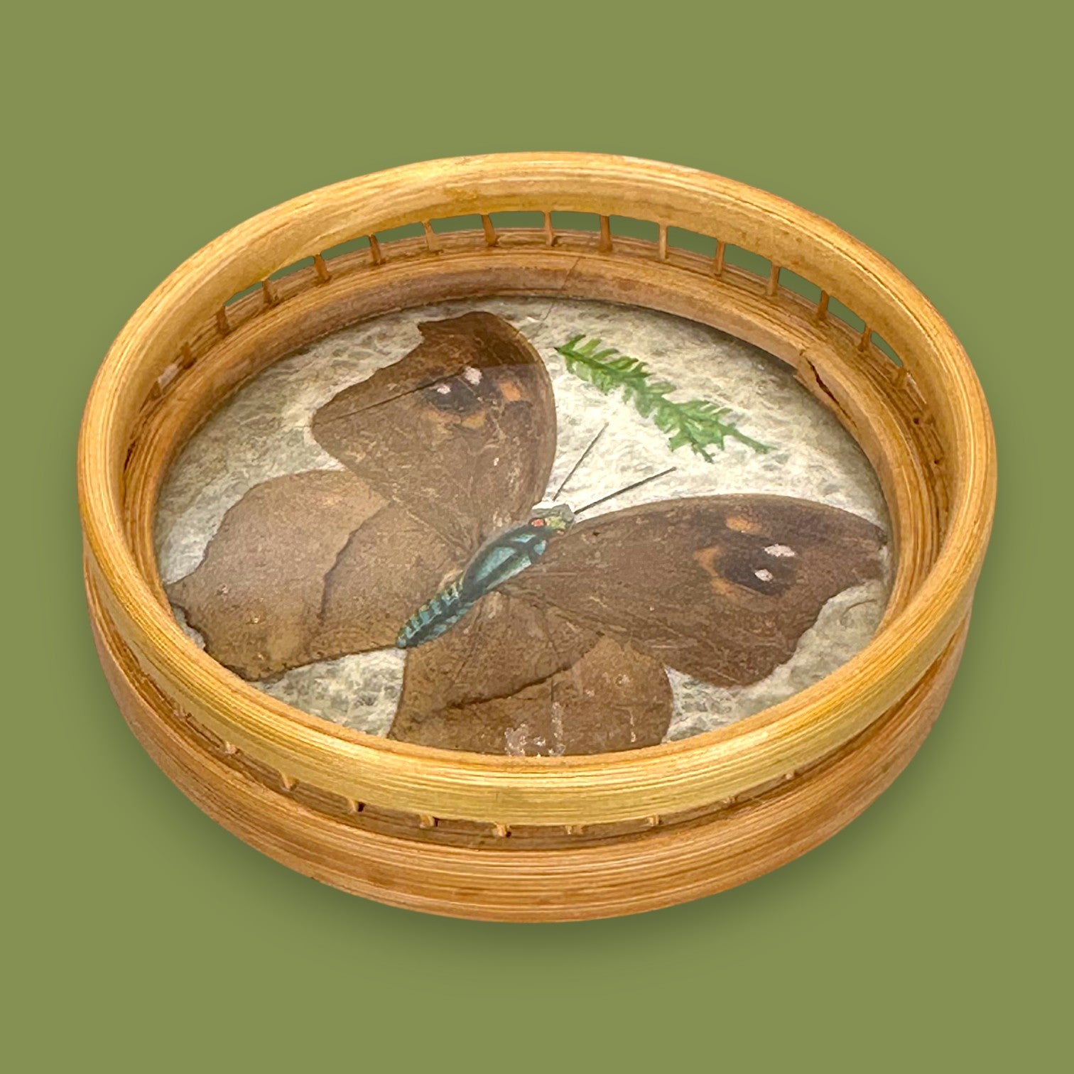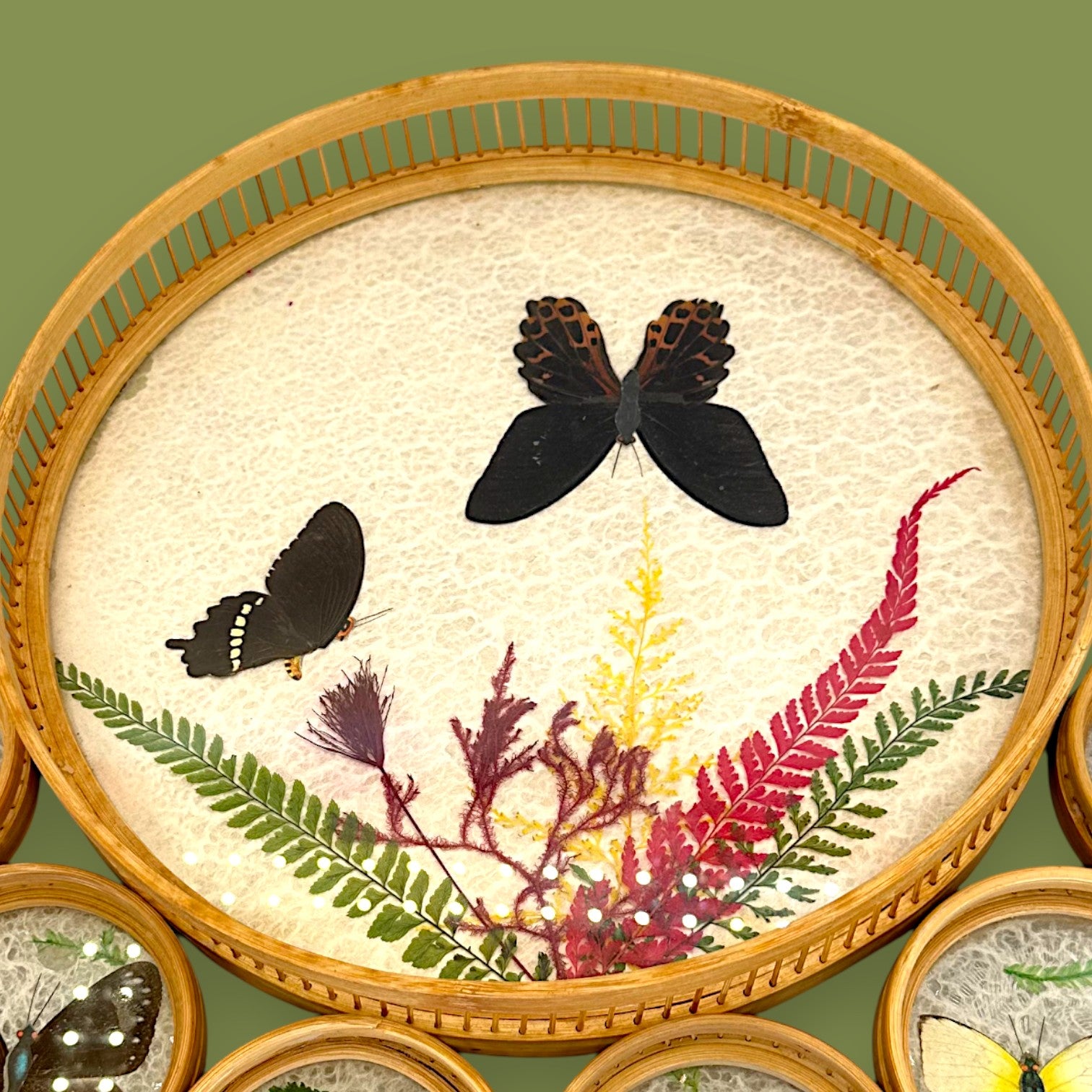 Vintage 1970s Real Butterfly Bamboo Serving Tray & 6 Coasters – Nature’s Art Preserved