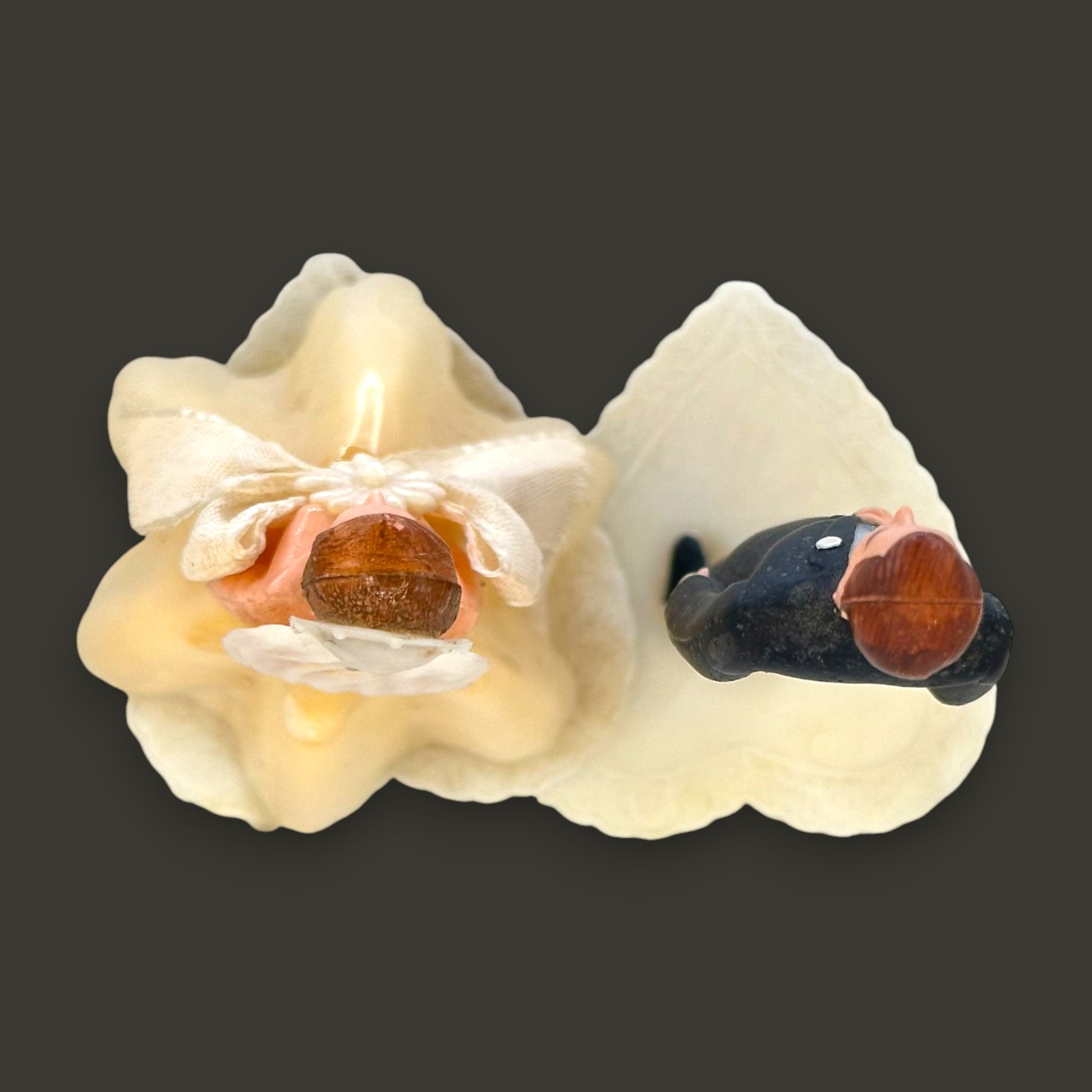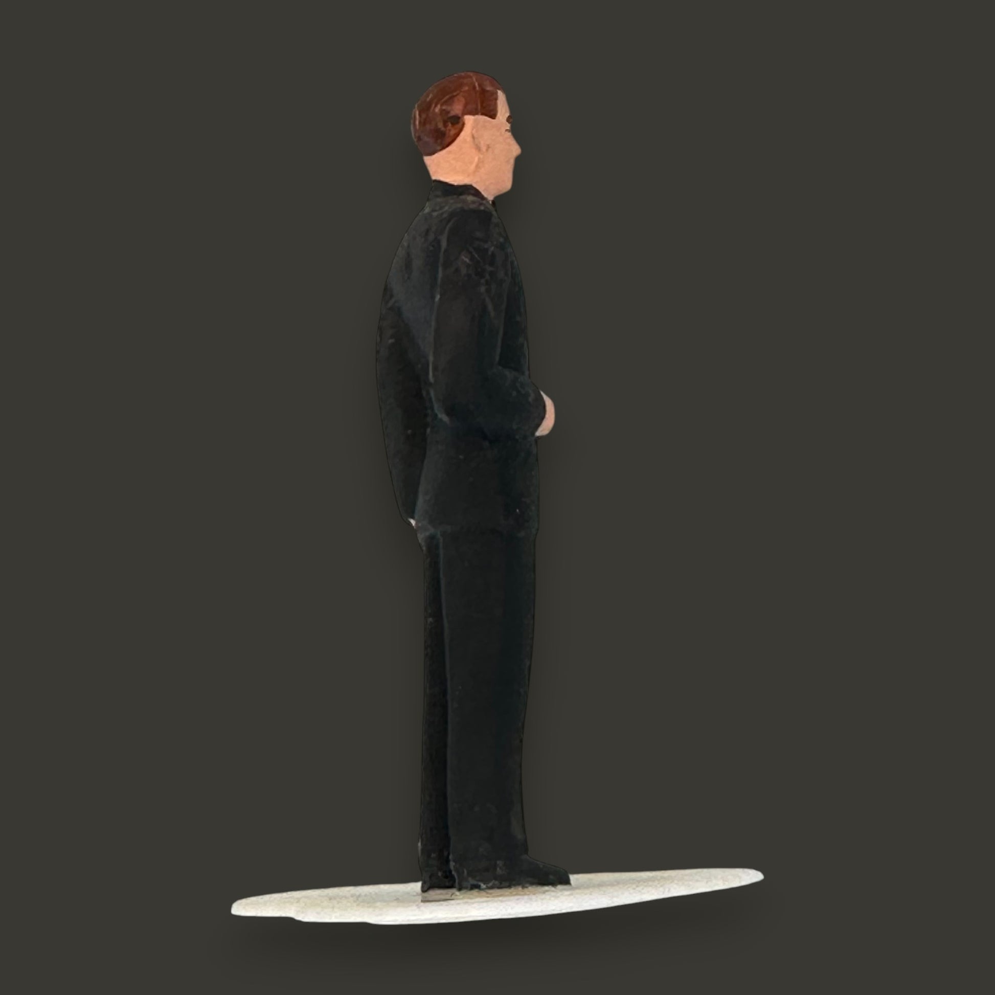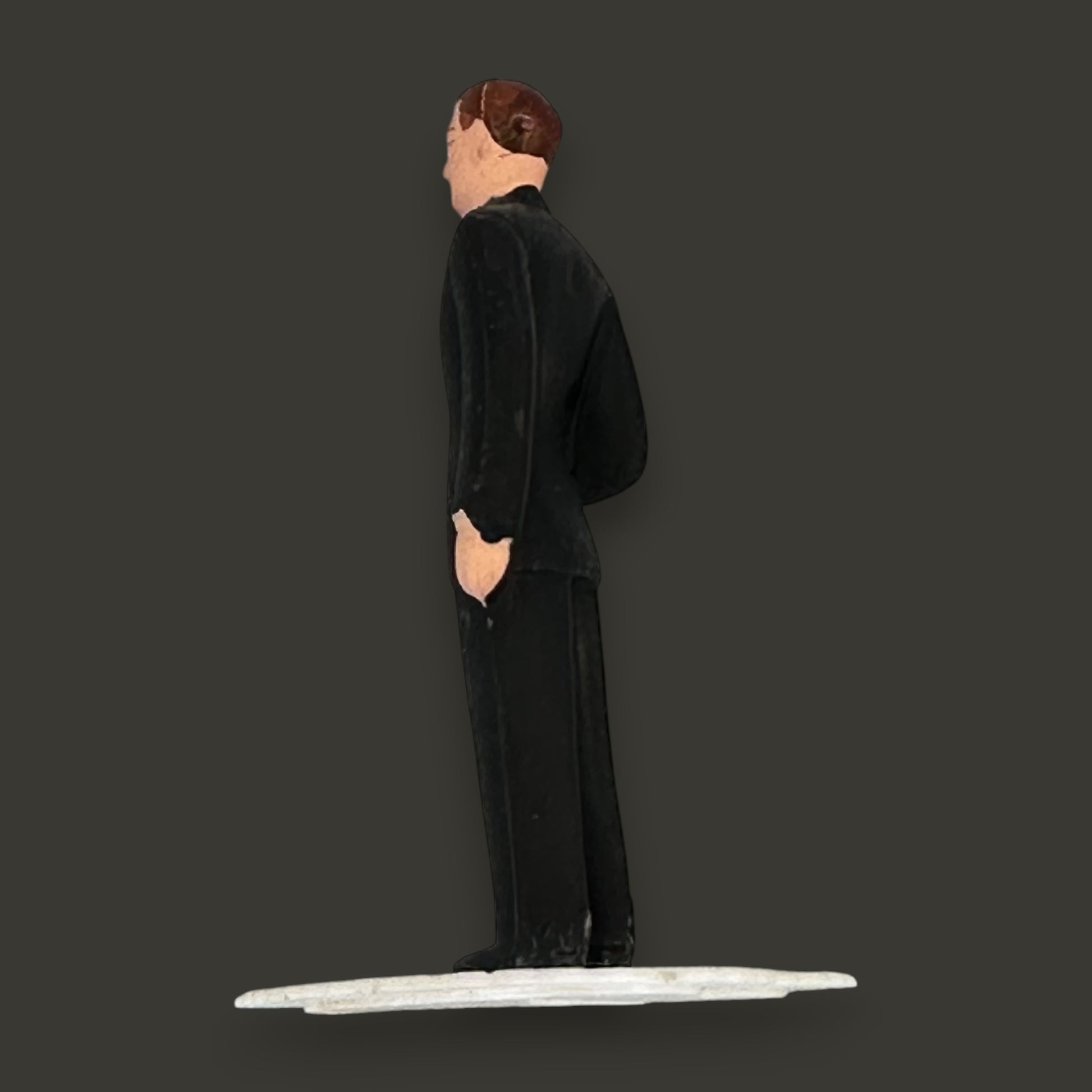 This set of 1960s Vintage Bride and Groom Cake Toppers captures the nostalgia of mid-century celebrations. Crafted with delicate detail, the groom stands proudly in a black tuxedo while the bride wears a soft cream gown and fabric shawl, holding a flower bouquet. These hand-painted figures bring elegance and sentiment to any vintage wedding display or collector’s shelf.