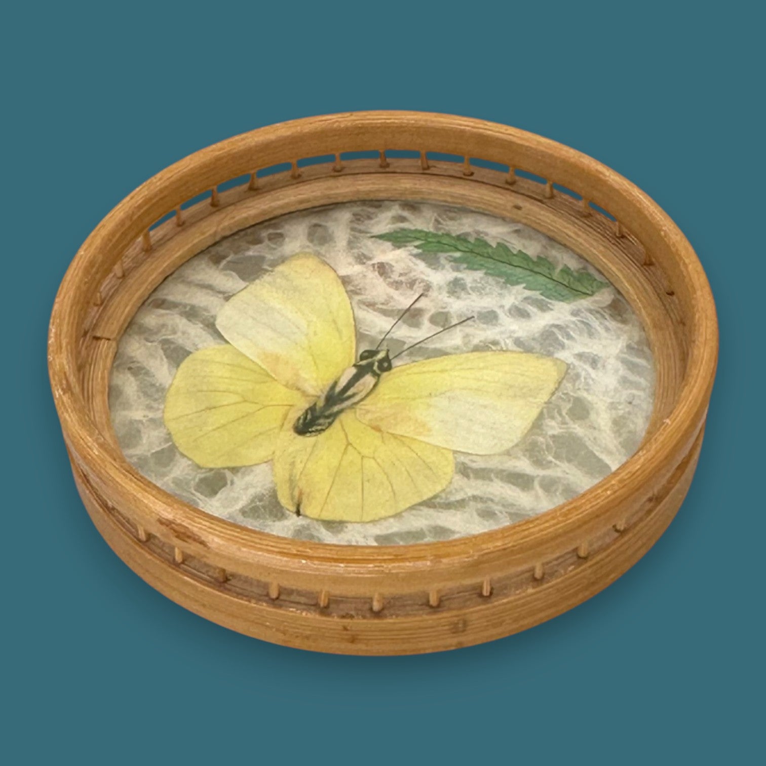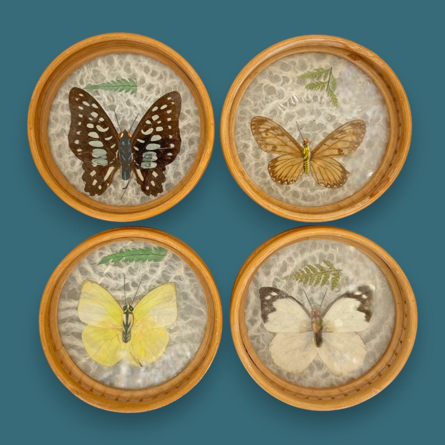 Vintage Butterfly Bamboo Coaster Set – Taxidermy Display (Lot of 4)