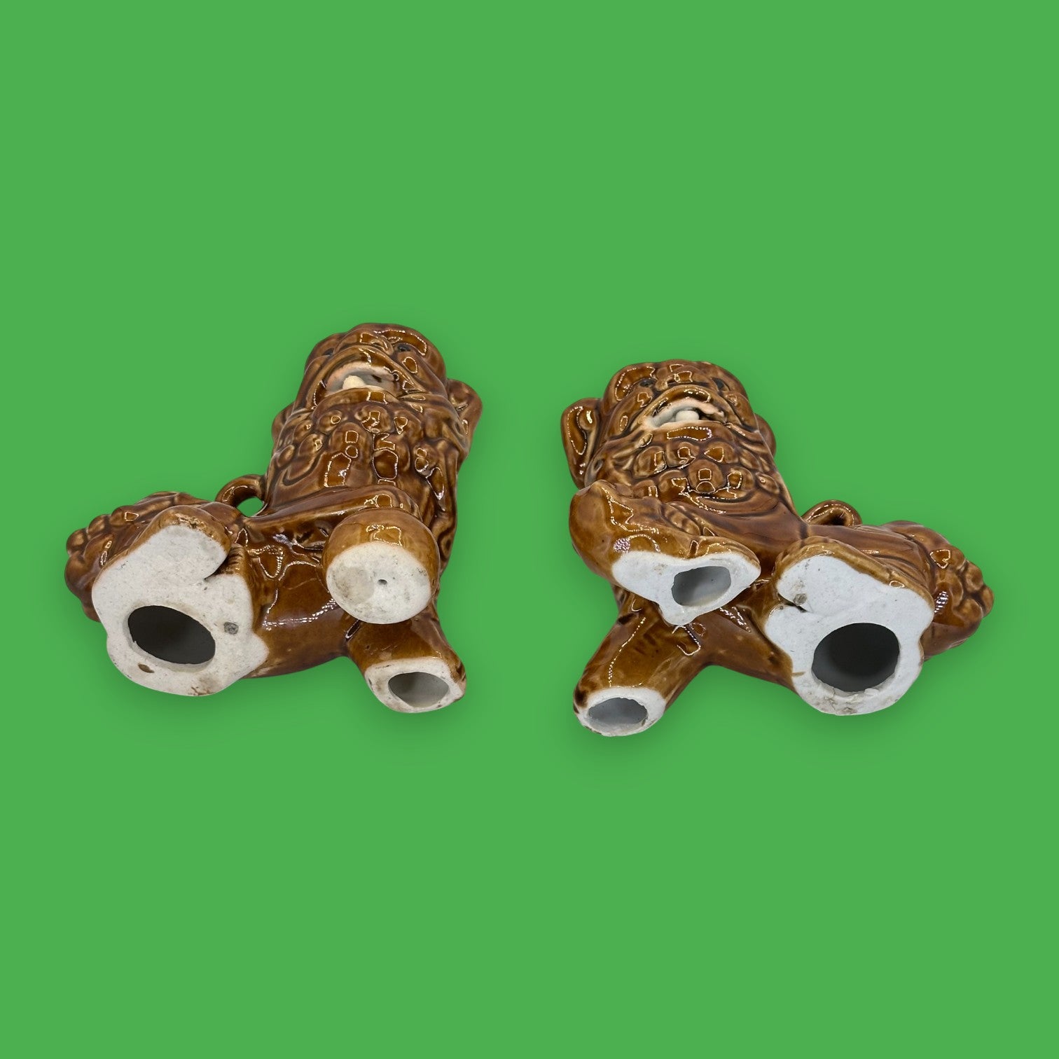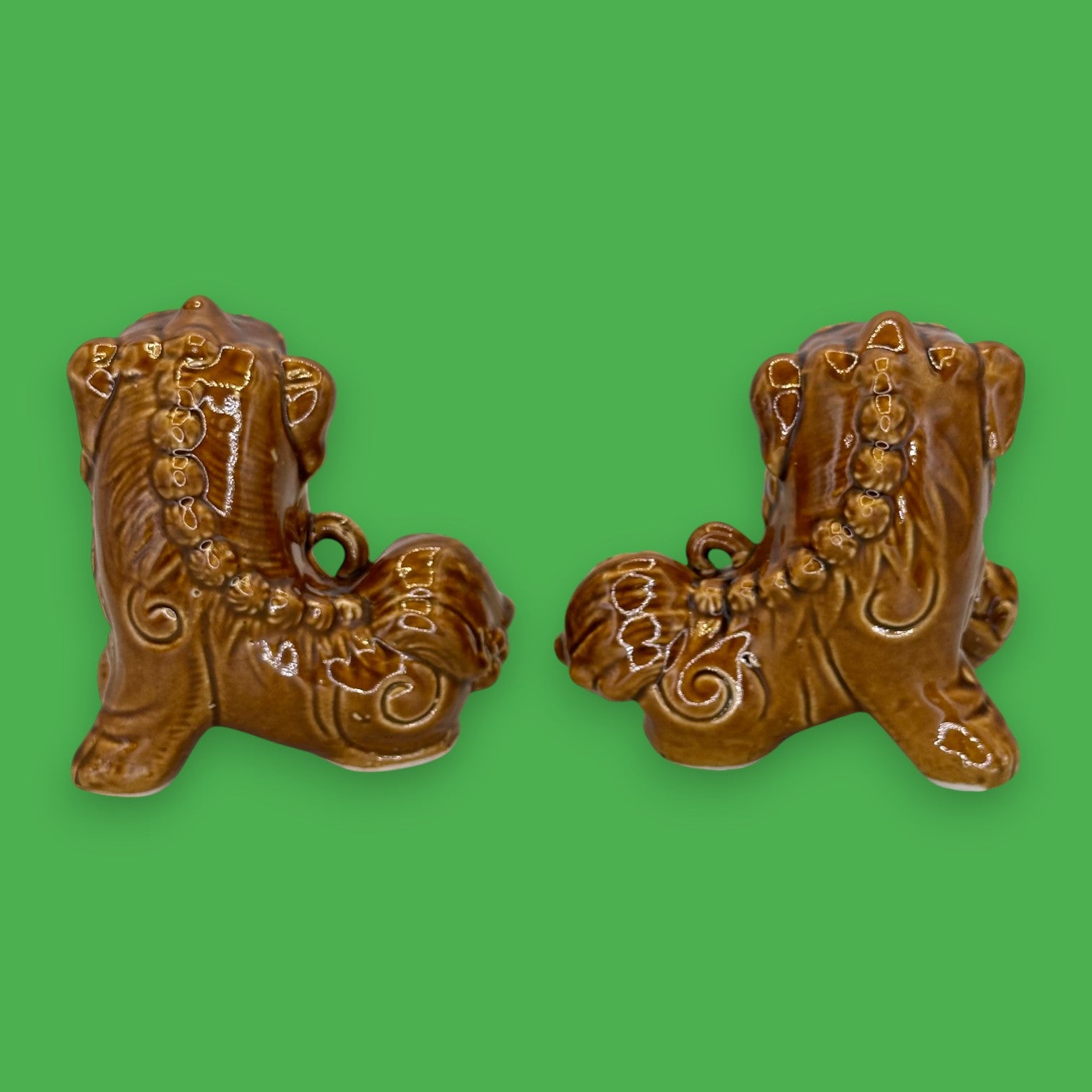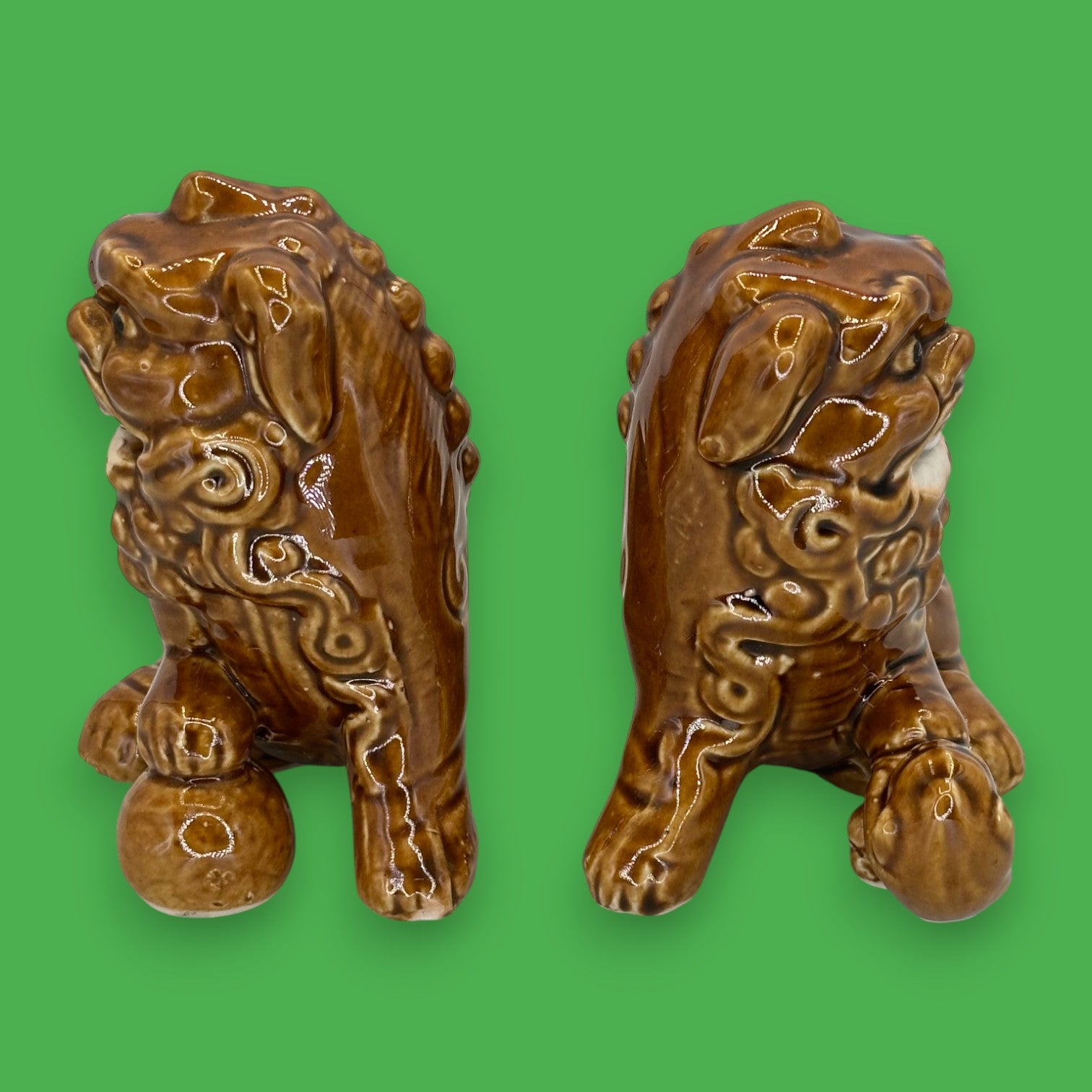 Vintage Chinese Foo Dog Figurine Pair – Brown Glazed Ceramic