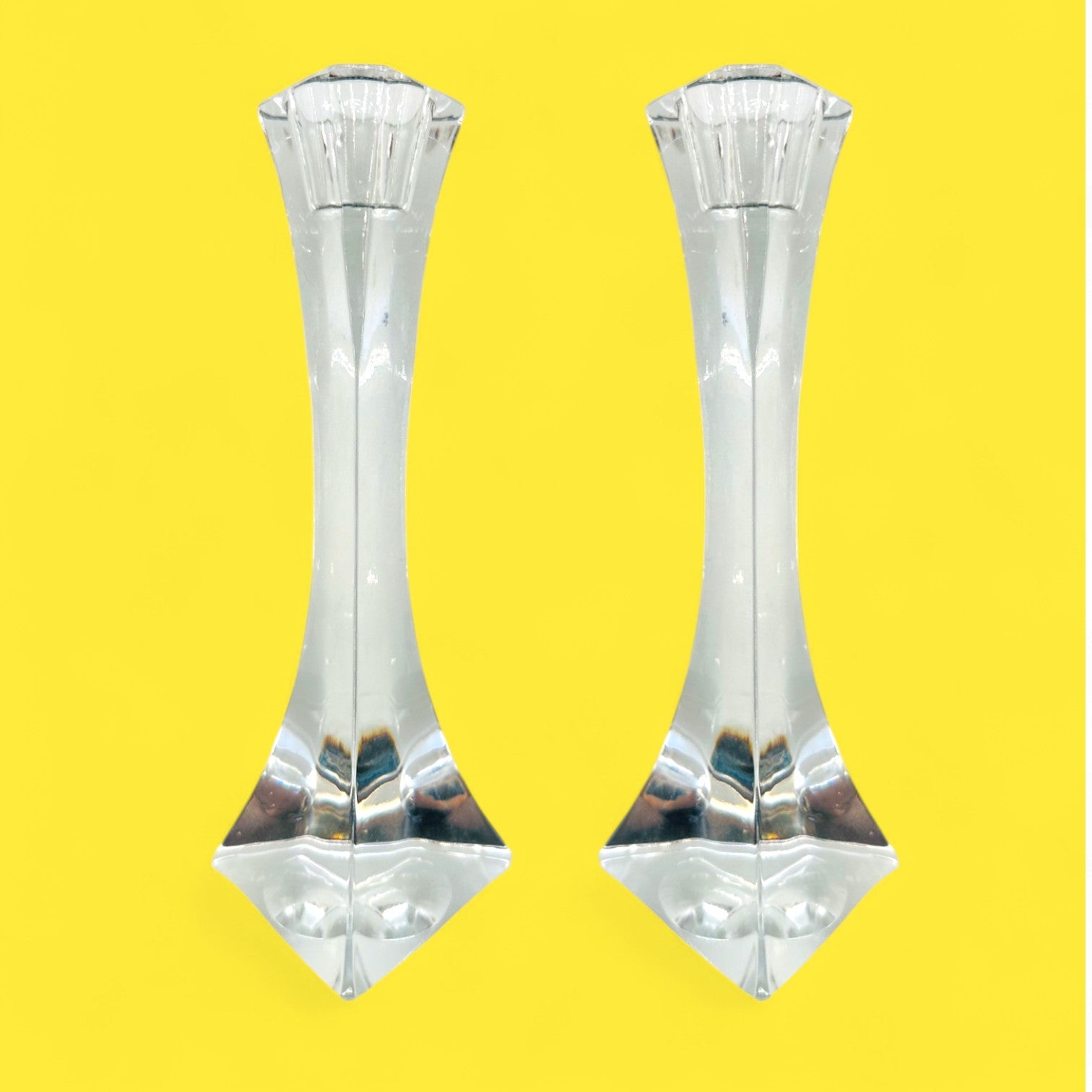 Vintage Thomas Webb Crystal Candlesticks – Triangular British Glass Pair