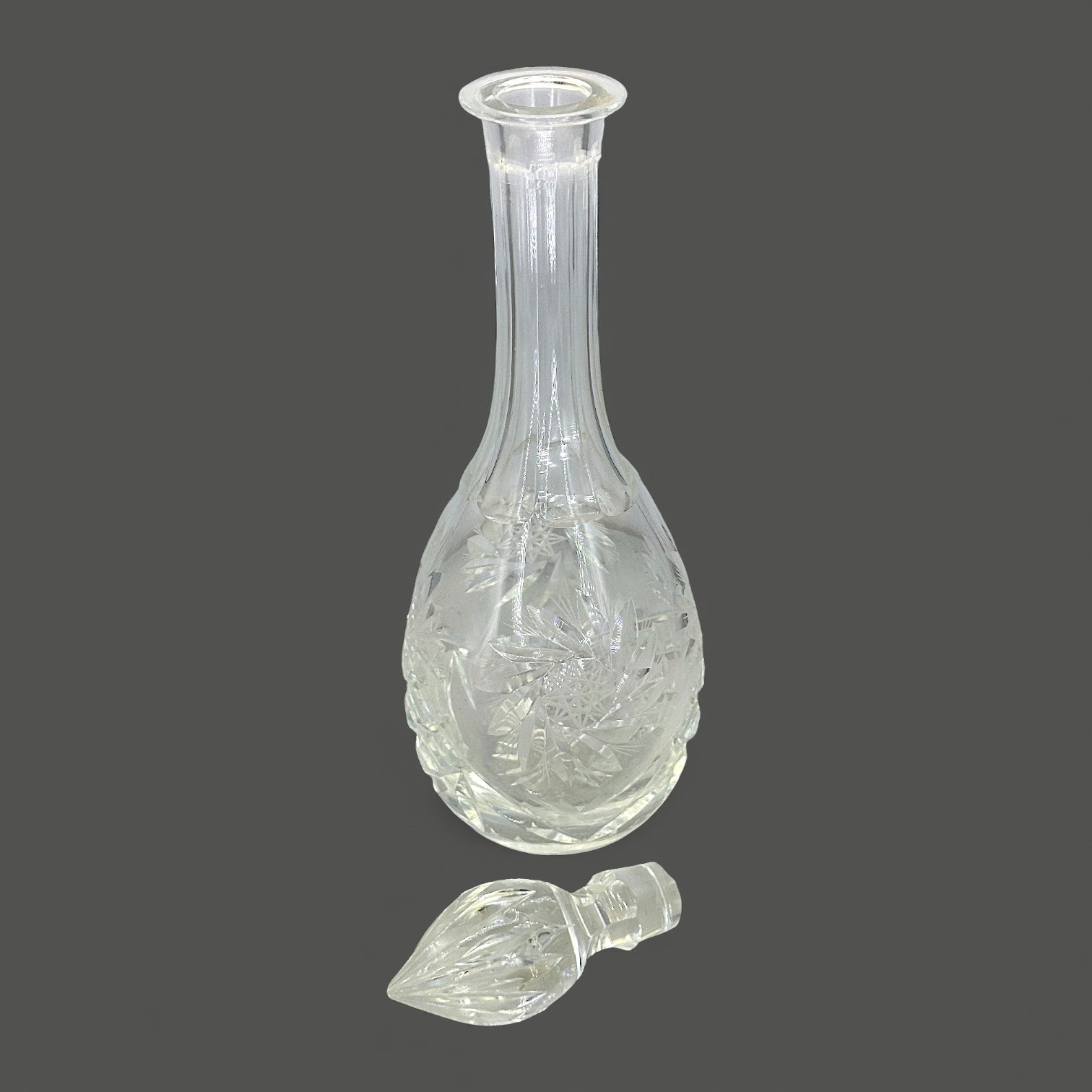This vintage whiskey decanter embodies timeless sophistication with its round body, faceted cuts, and hand-etched detailing. Perfectly suited for barware collectors or mid-century enthusiasts, this decanter combines functionality with bohemian-chic style, making it ideal for both serving and display.
