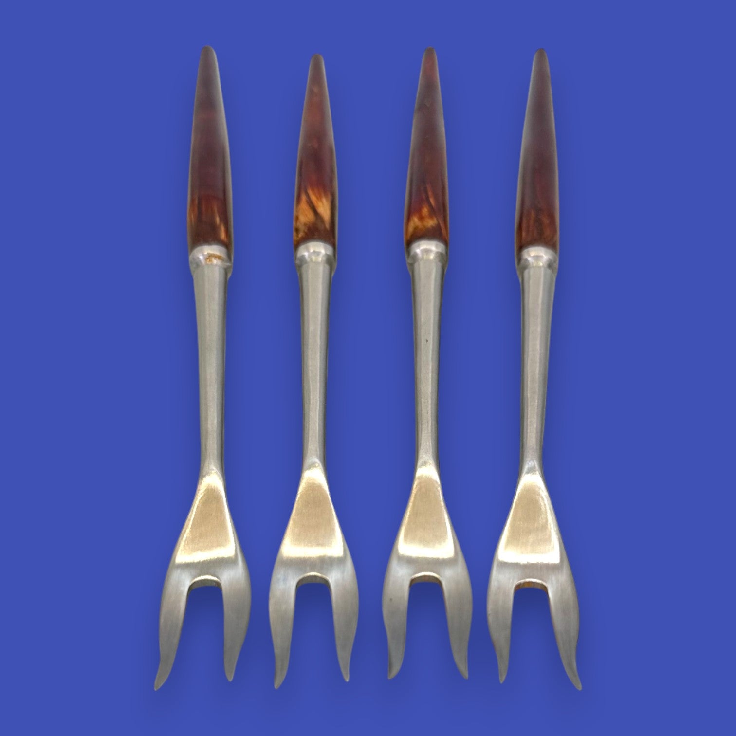 Vintage Fondue Forks Set of 4 Wood Handle Stainless Steel Japan