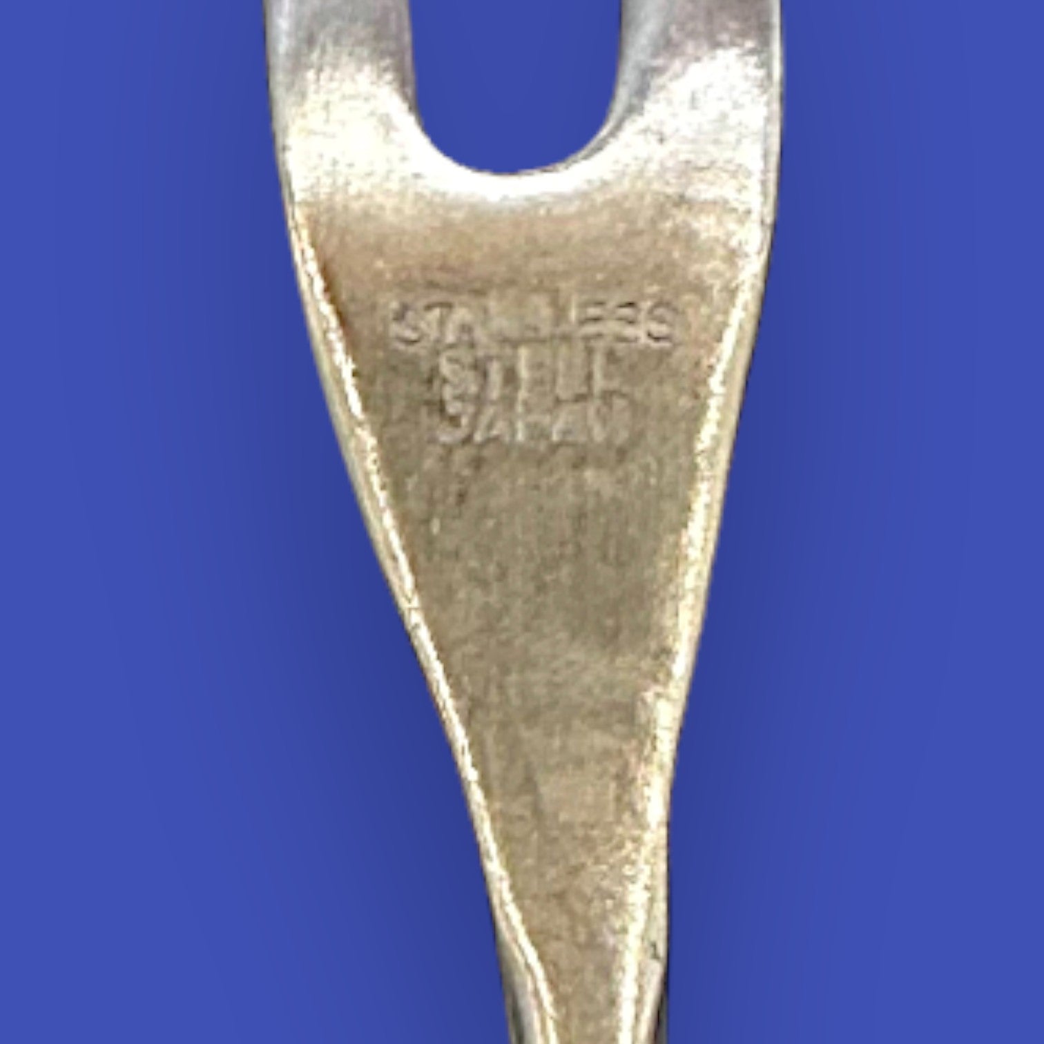 This vintage set of 4 fondue forks combines sleek stainless steel tips with rich wooden handles for a classic mid-century aesthetic. Made in Japan, these forks feature shorter tongs, making them especially handy for dipping bread, fruit, or meats with ease. Designed with both function and style in mind, they bring a warm nostalgic touch to gatherings around the fondue pot. Lightweight yet sturdy, they reflect the craftsmanship of their era.