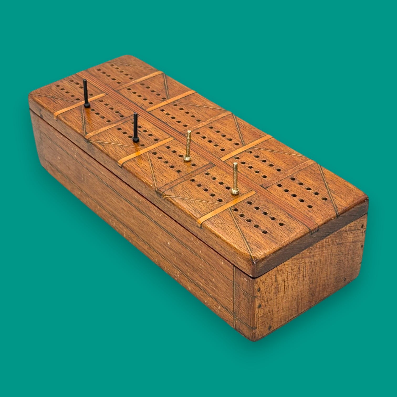 Vintage Inlaid Wooden Crib Board with Card Storage