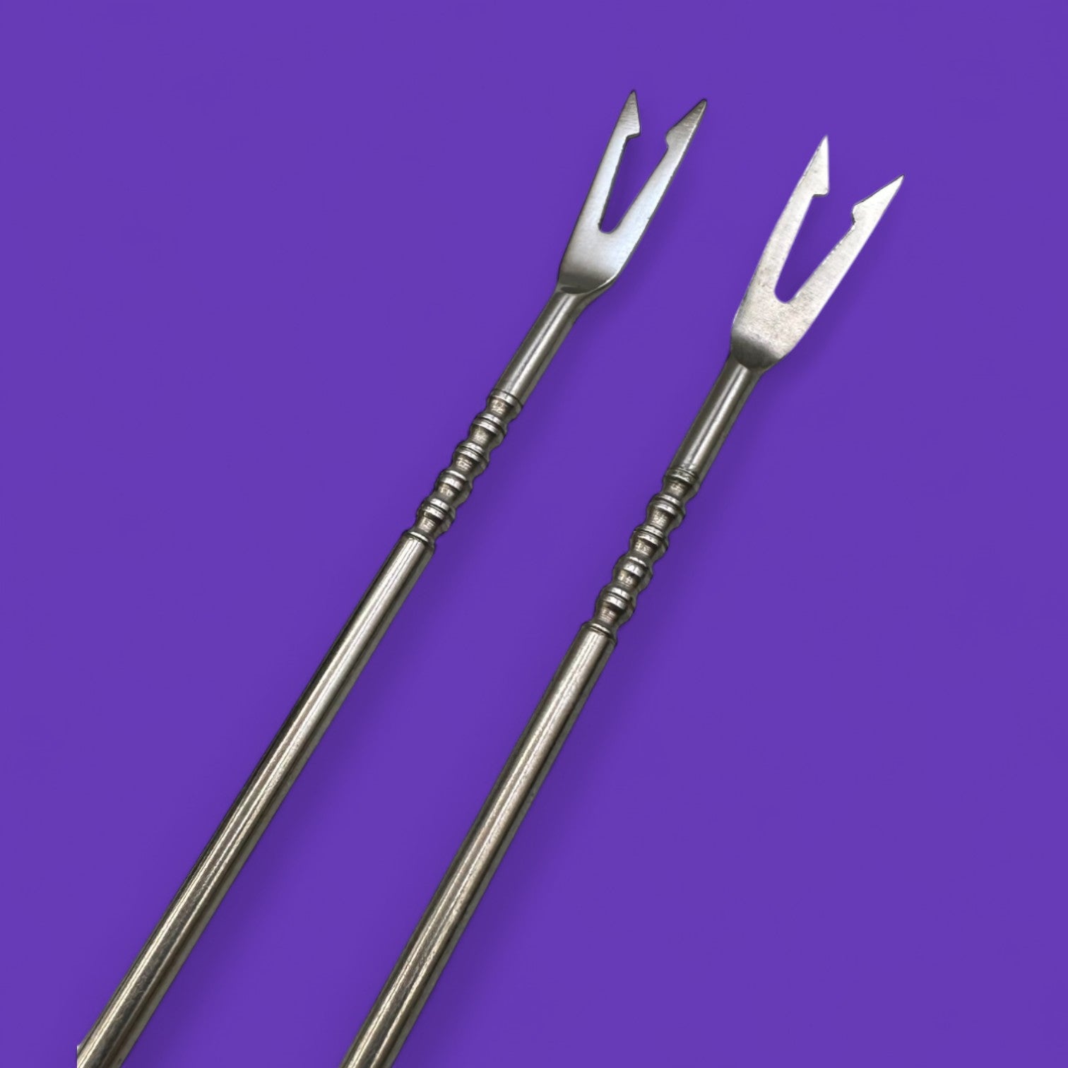 Bring vintage charm and practical elegance to your dining experience with this mid-century teak fondue fork set – a perfect collectible for entertaining and everyday use.