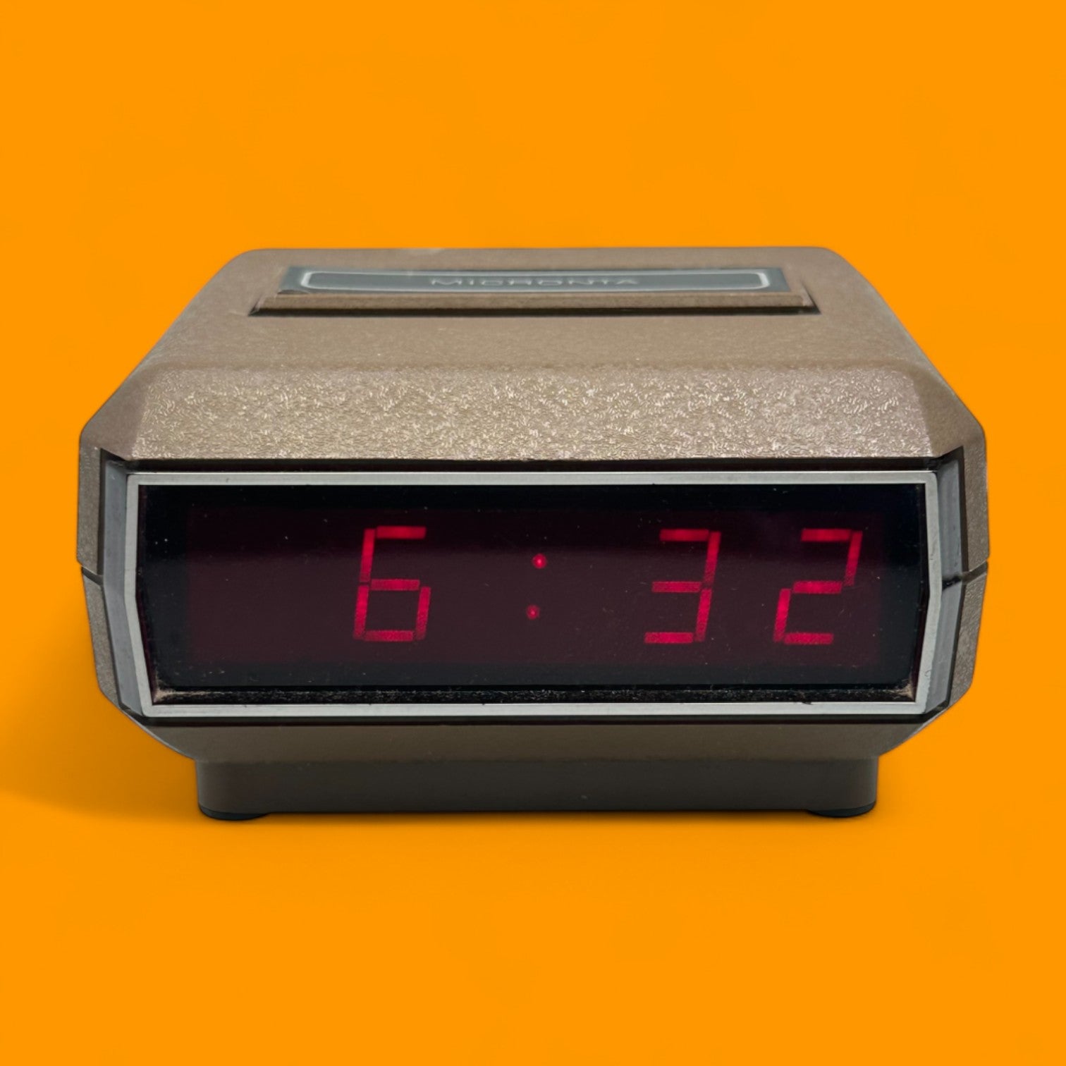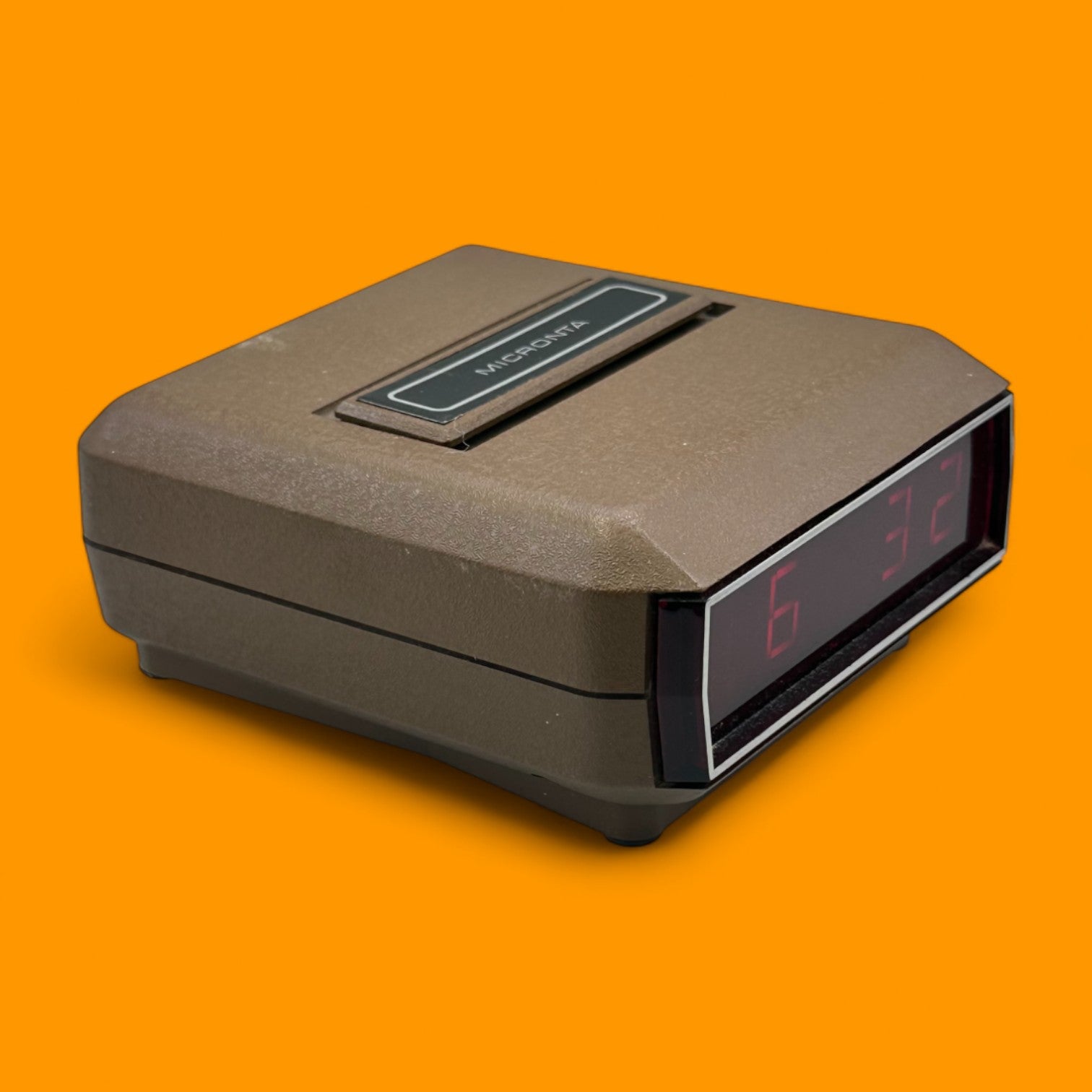 Relive the golden age of bedside electronics with this vintage Micronta digital alarm clock. Featuring bold red LED numbers and a compact, metallic body, it's the perfect blend of classic design and early digital tech—ideal for collectors or retro-style interiors.