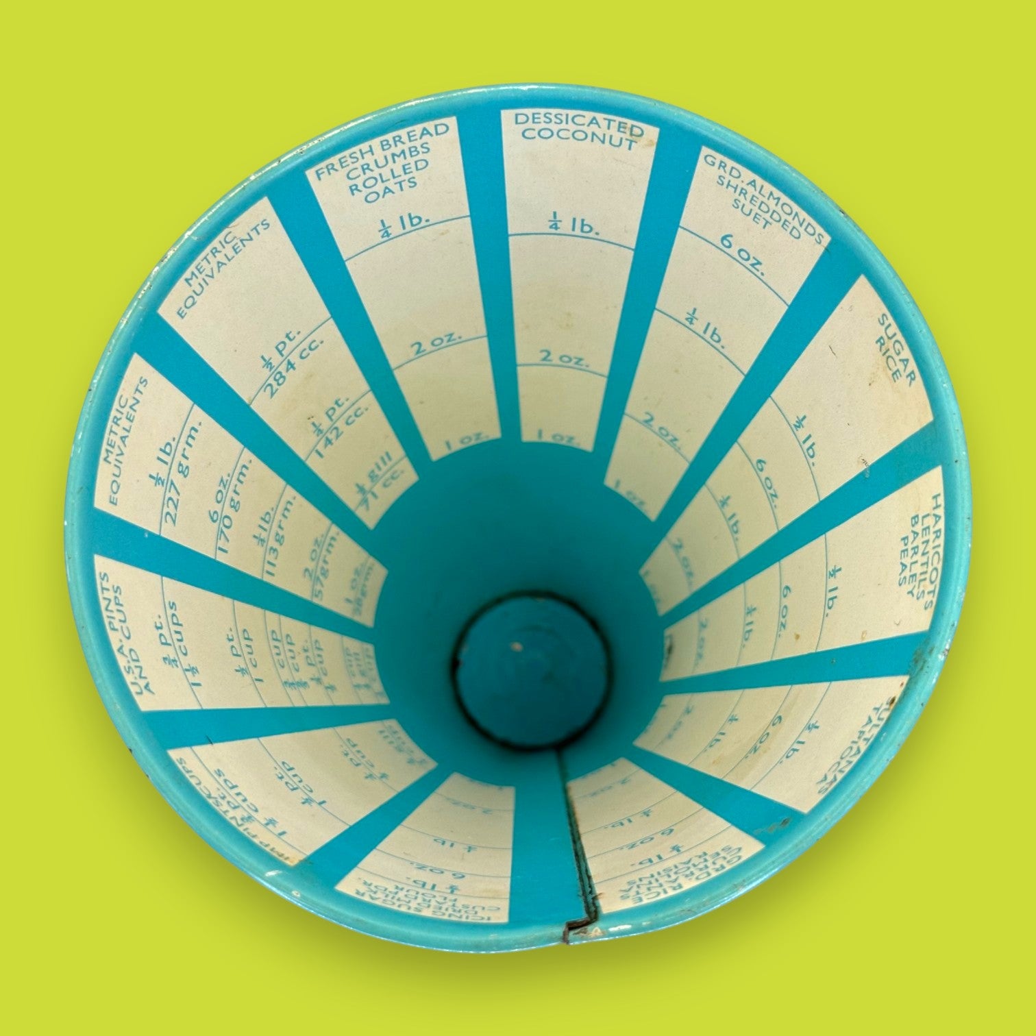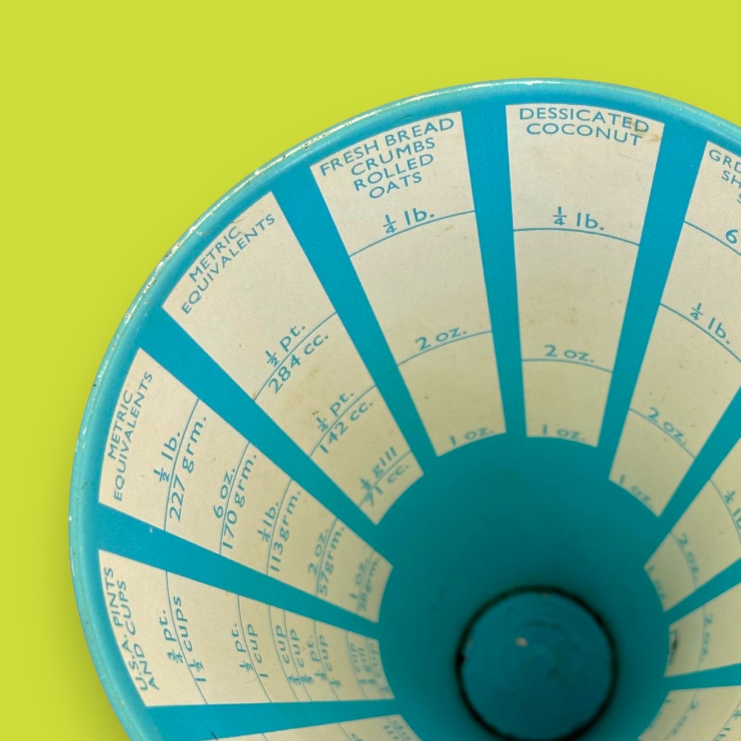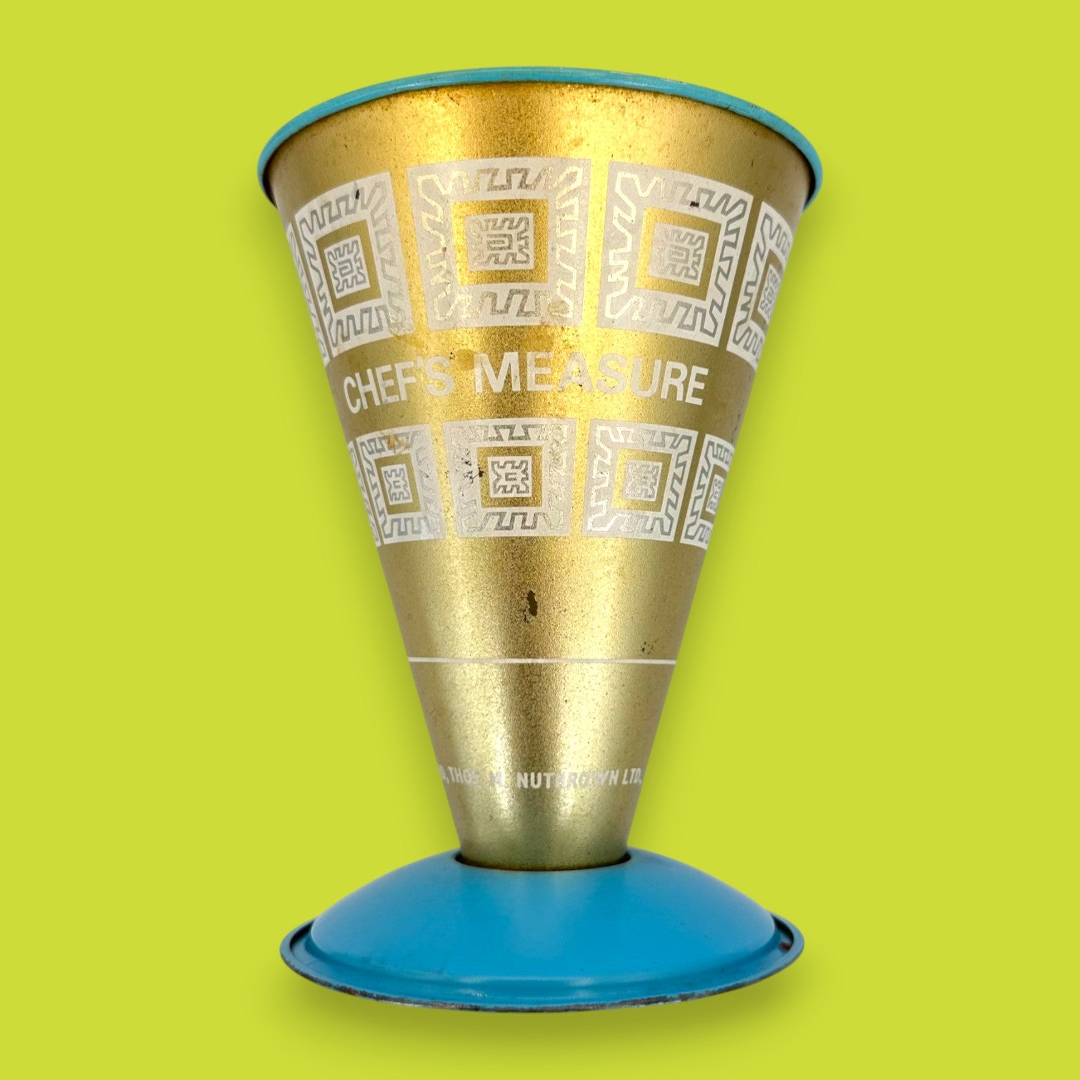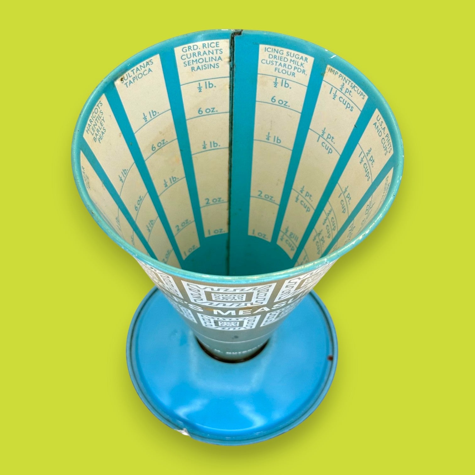 This vintage Nutbrown “Cook’s Dry Measure” evokes the charm of traditional British baking. Crafted from tin-plated metal in a classic conical shape, it was designed to measure dry ingredients like flour, sugar, and rice by weight or volume. Its dual metric and imperial calibrations reflect a time when precision met simplicity — making it a nostalgic and functional piece for collectors or home bakers alike.