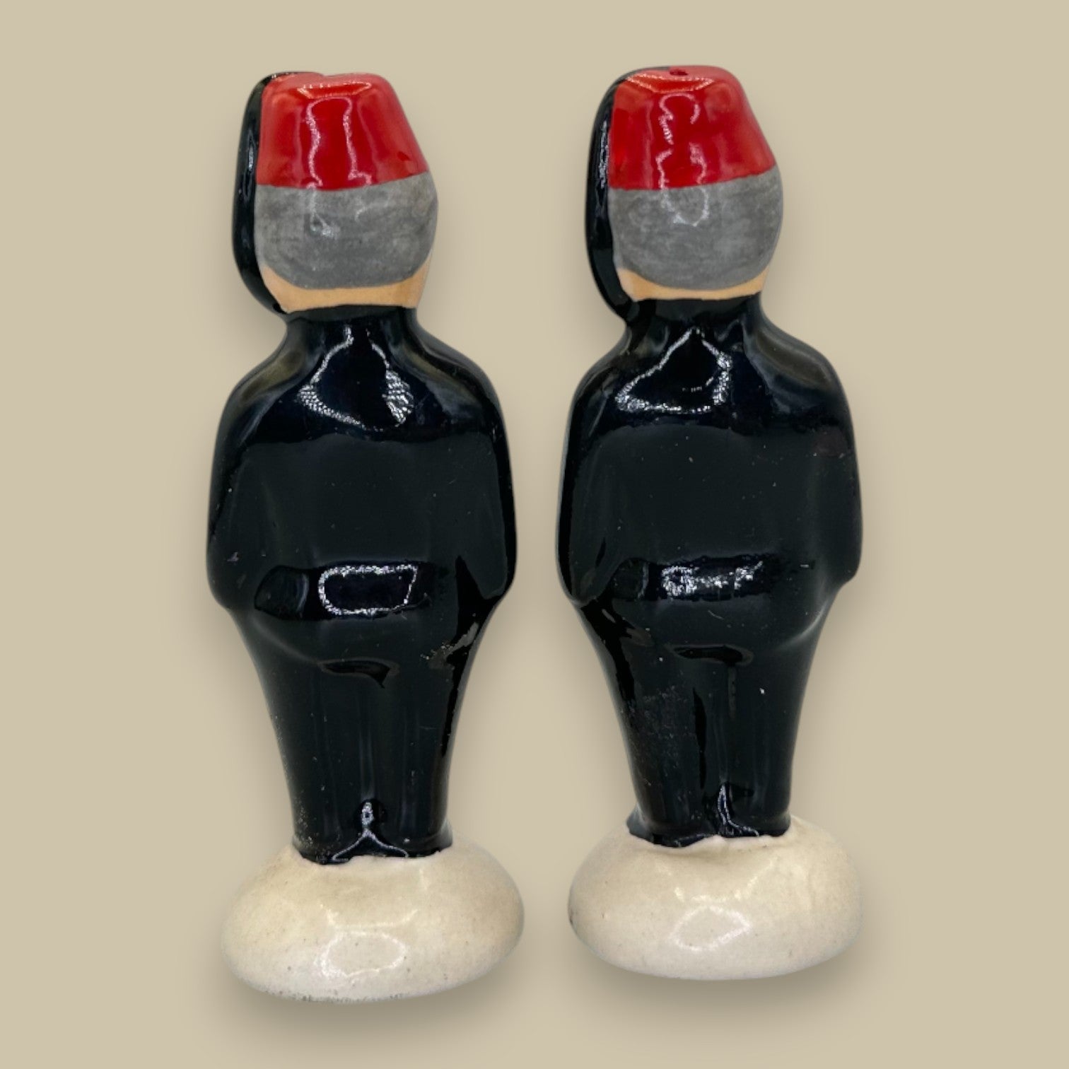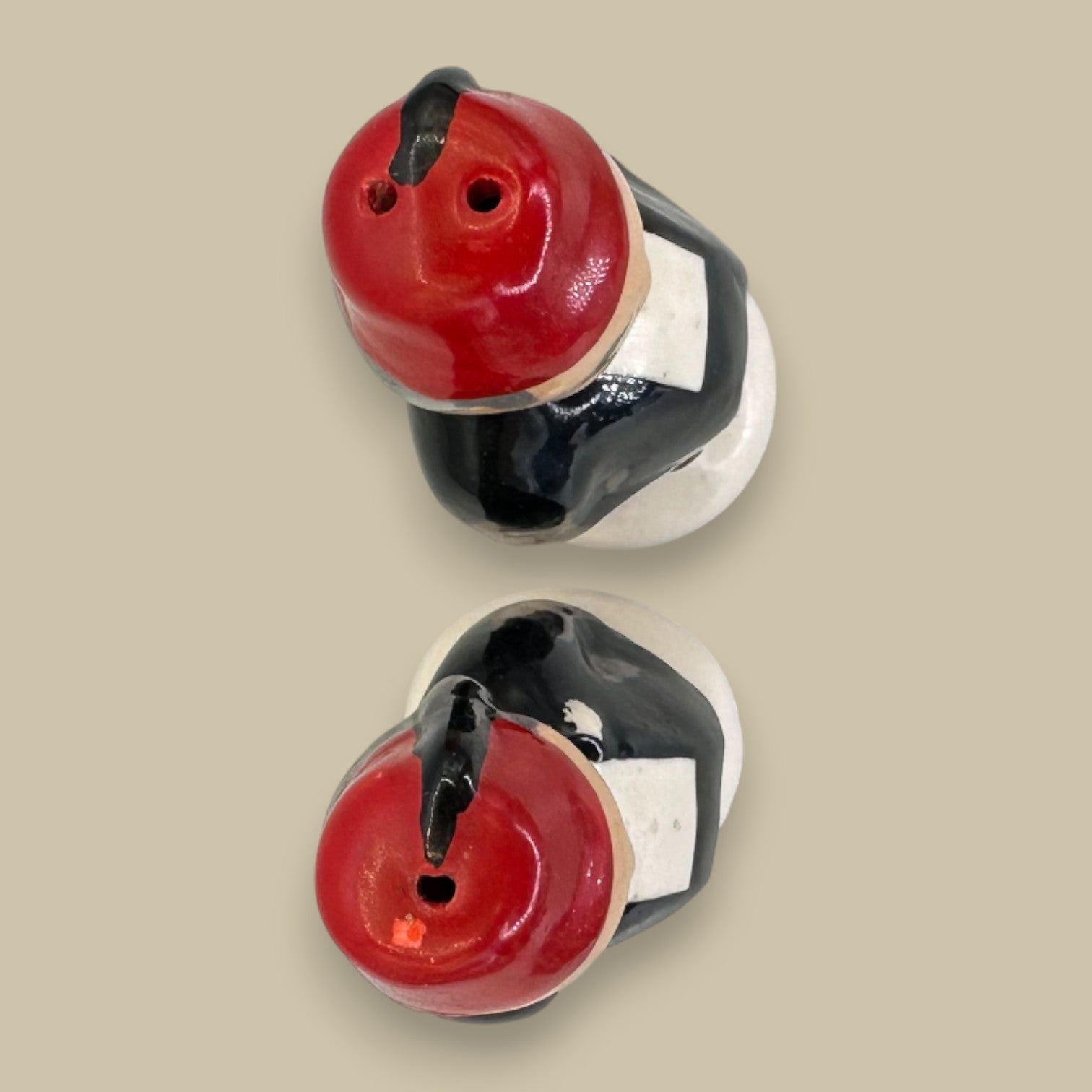 A charming and rare pair of figural ceramic shakers perfect for collectors.