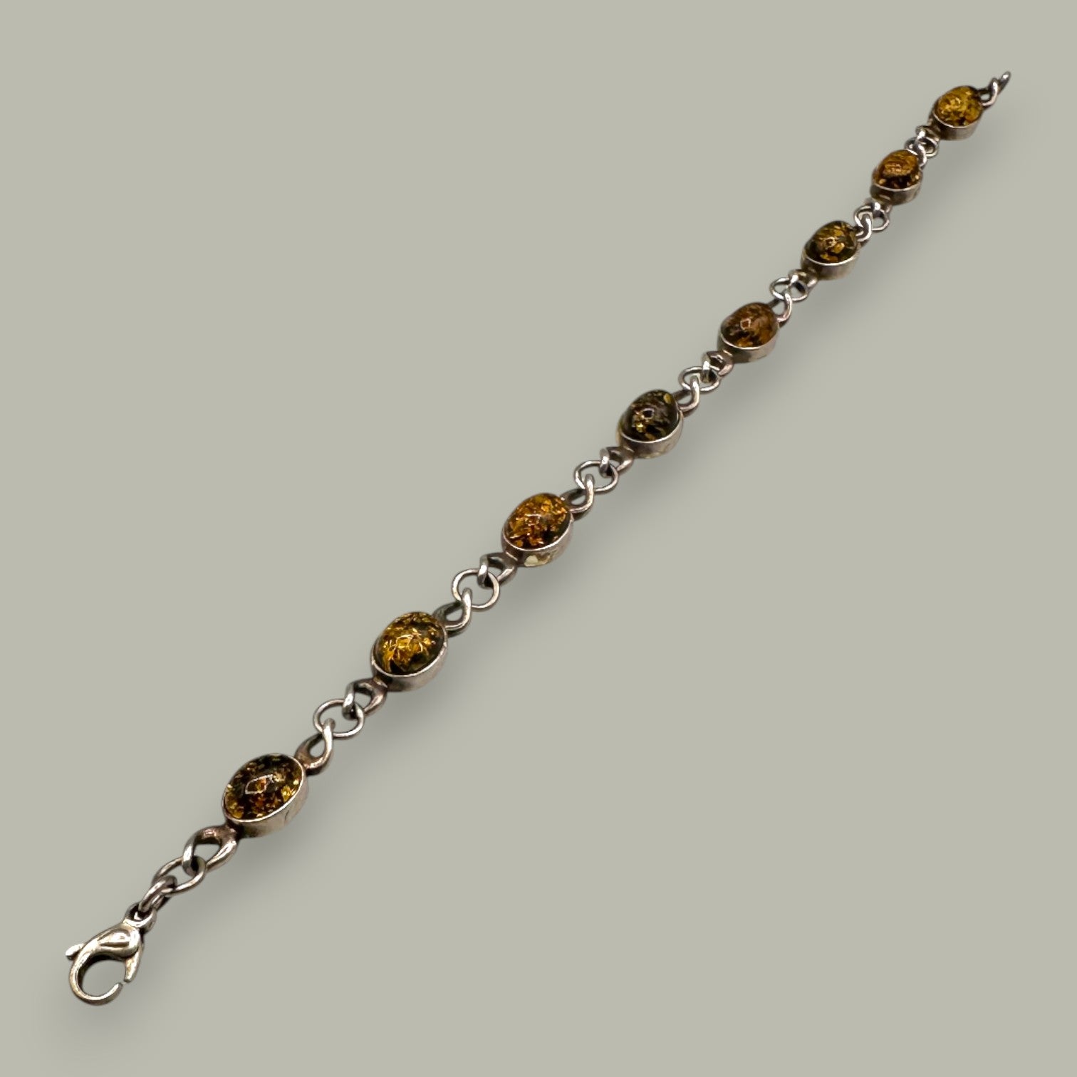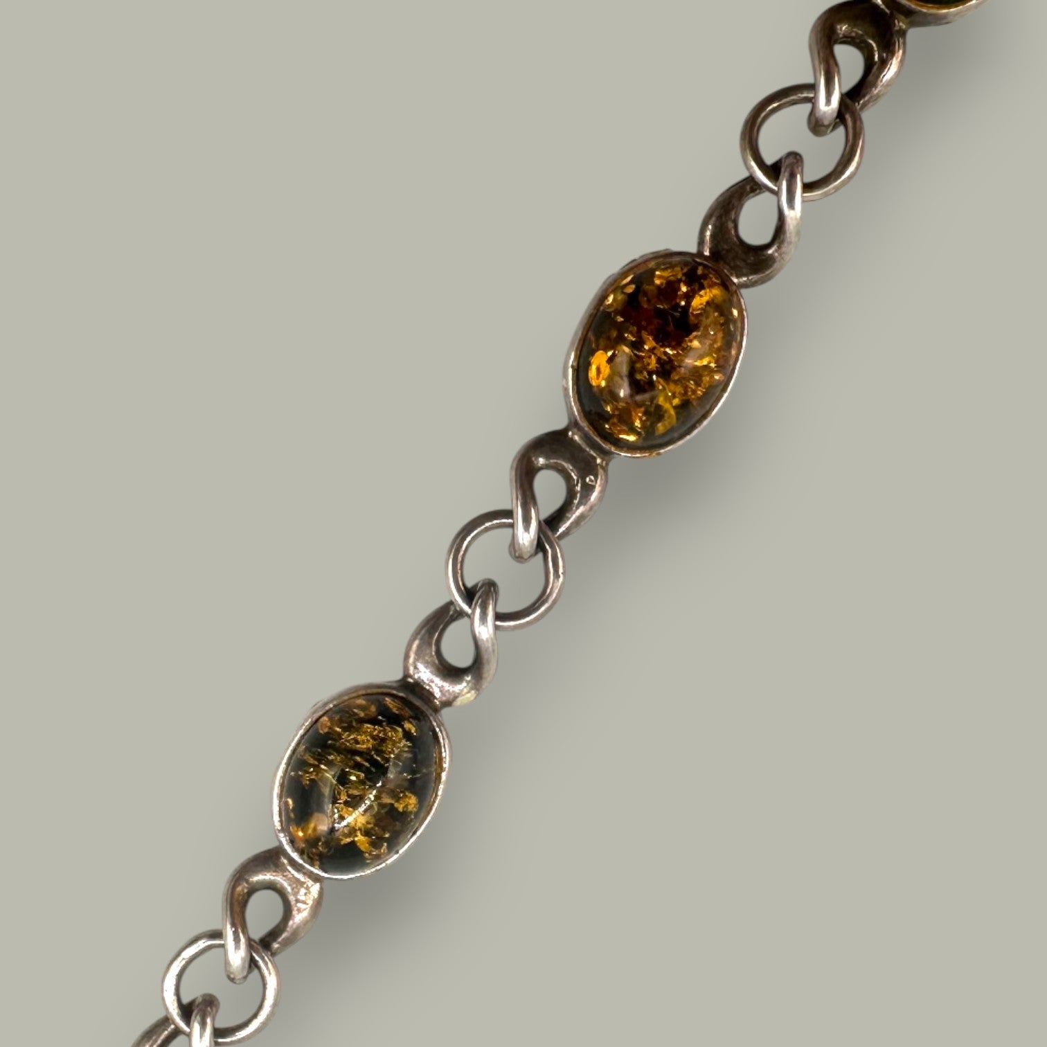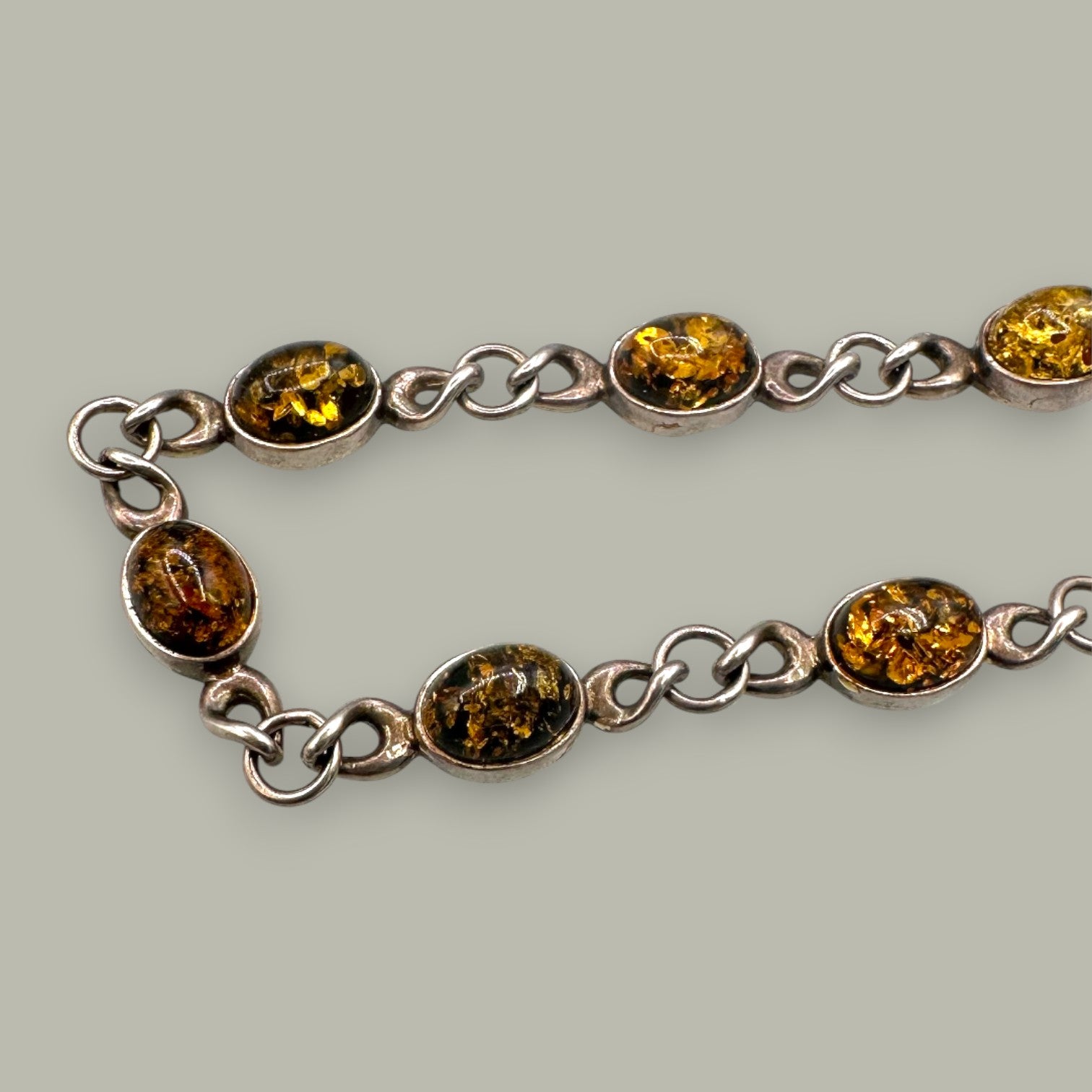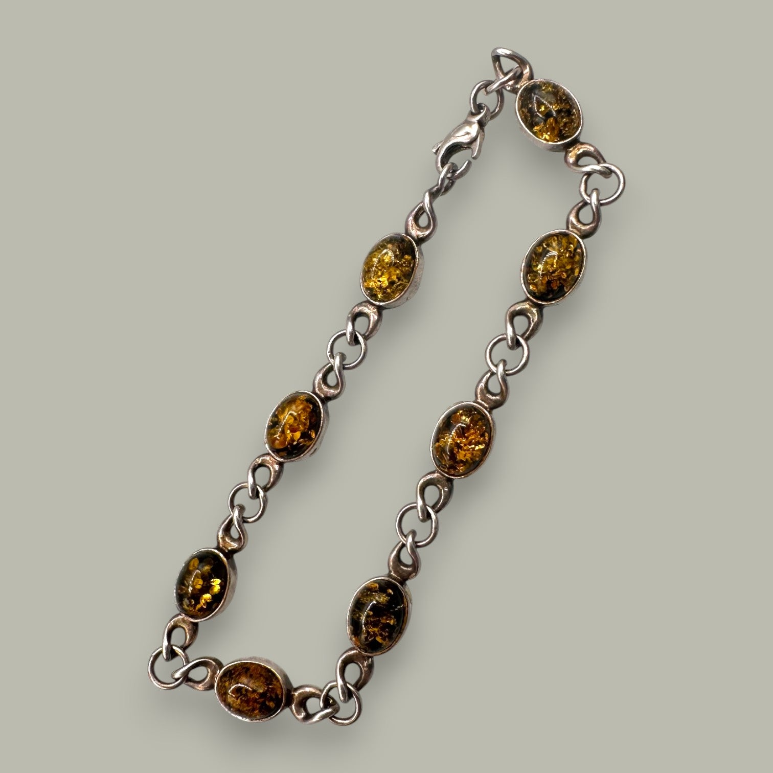 A warm, character-rich bracelet that blends natural amber beauty with vintage silver craftsmanship.