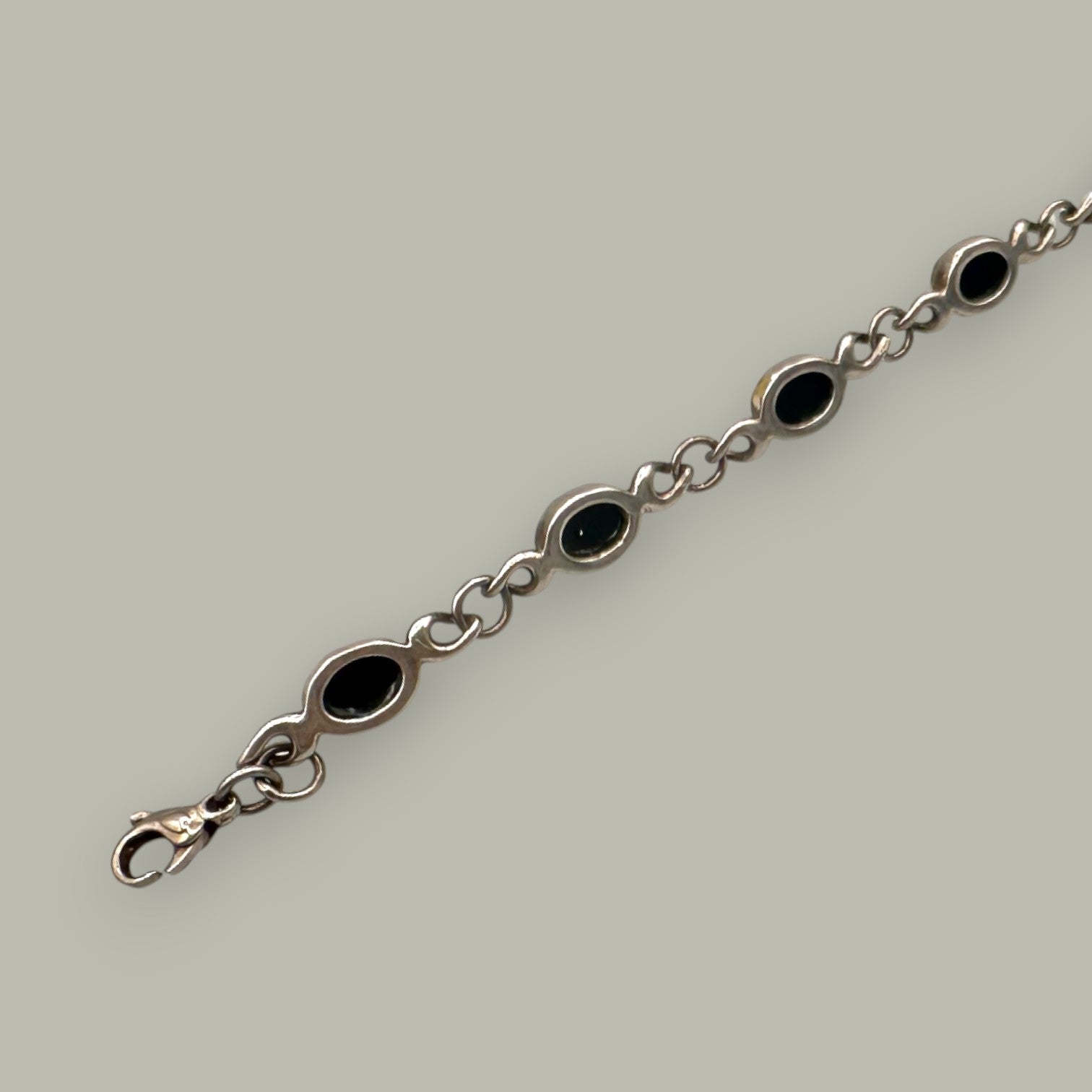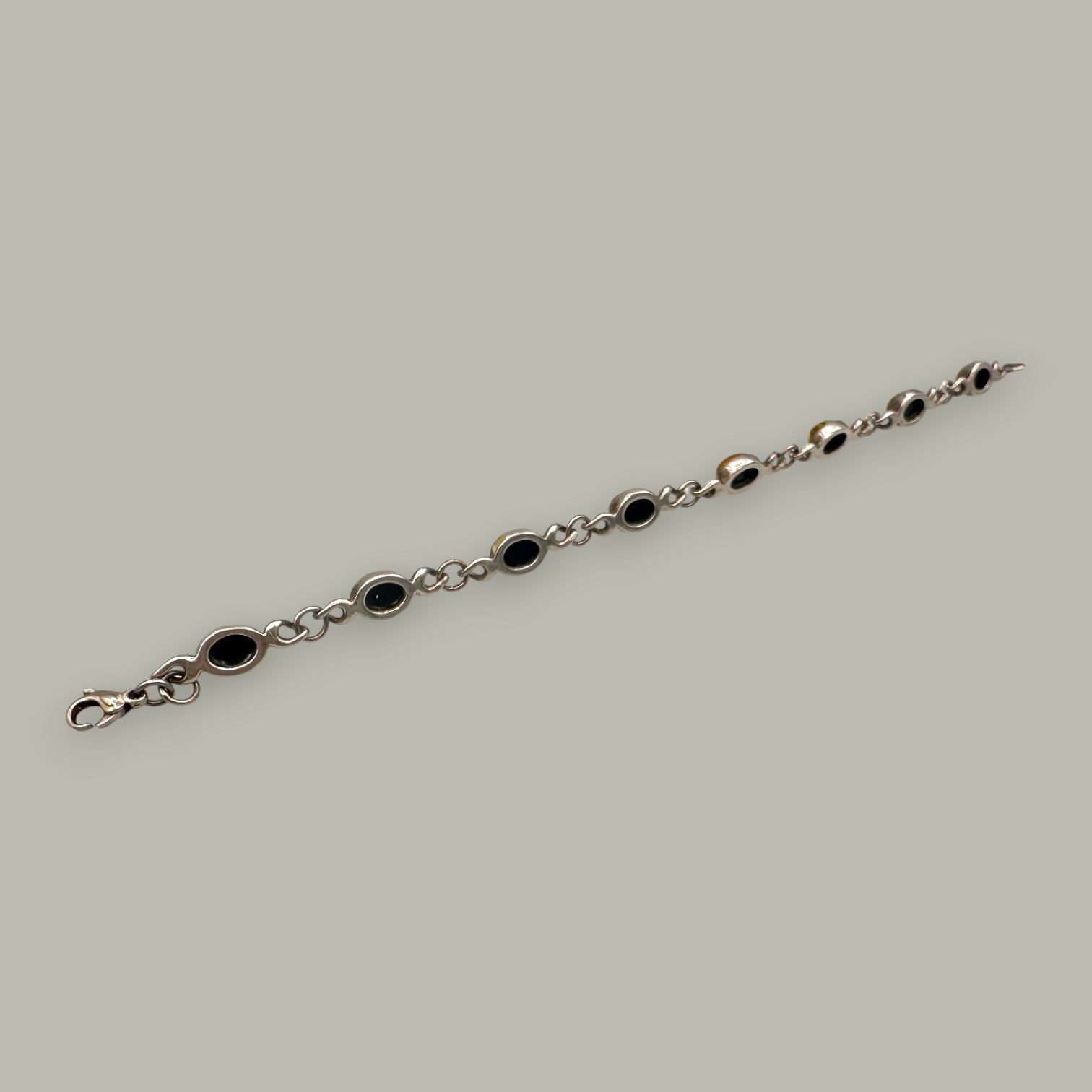 This vintage sterling silver and amber bracelet showcases rich, golden amber cabochons set along a timeless linked silver design. Each oval amber stone displays natural inclusions, giving the piece depth, warmth, and organic character. The bracelet has a refined yet earthy aesthetic, making it suitable for both everyday wear and special occasions. Its vintage charm and handcrafted look make it a standout addition to any jewelry collection. Lightweight yet substantial, it wears comfortably while still feeling special.