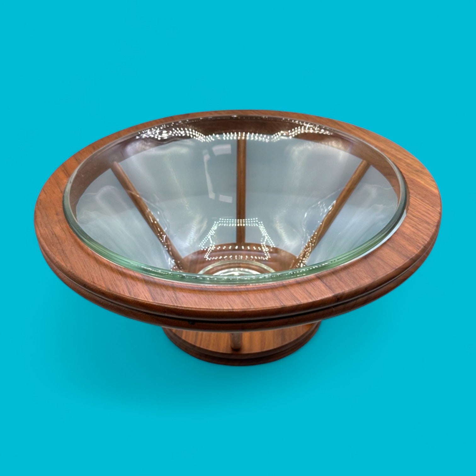Bring authentic 1960s elegance to your dining or living space with this Canadian-made teak and glass salad bowl – a perfect union of function and design.