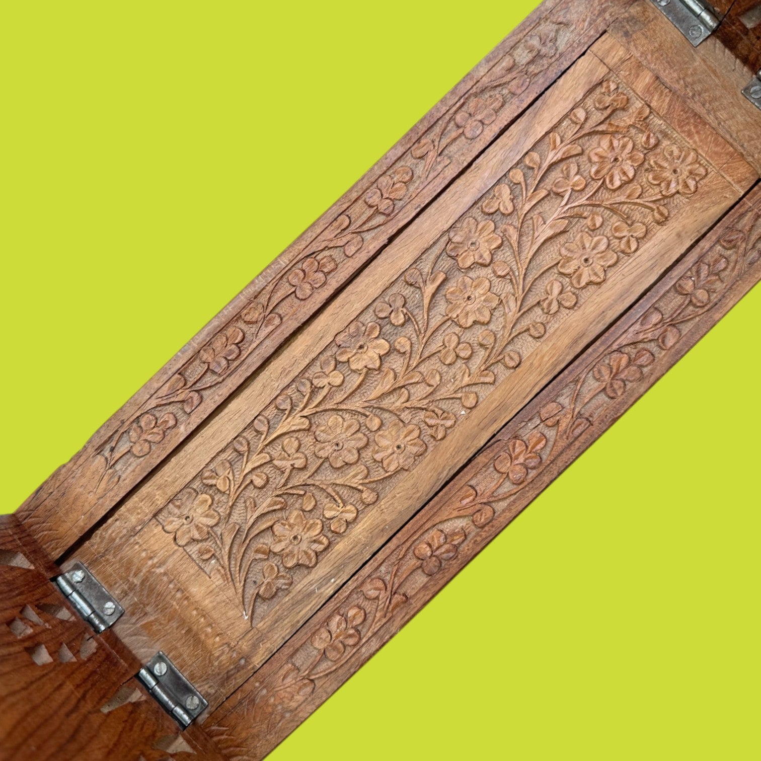 Vintage Wooden Book Stand Book Ends – Adjustable Kashmir / Indian Hand Carved