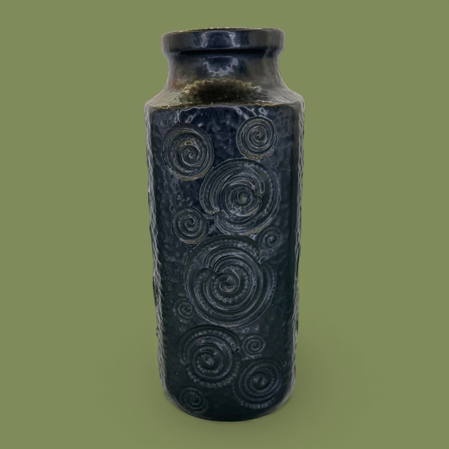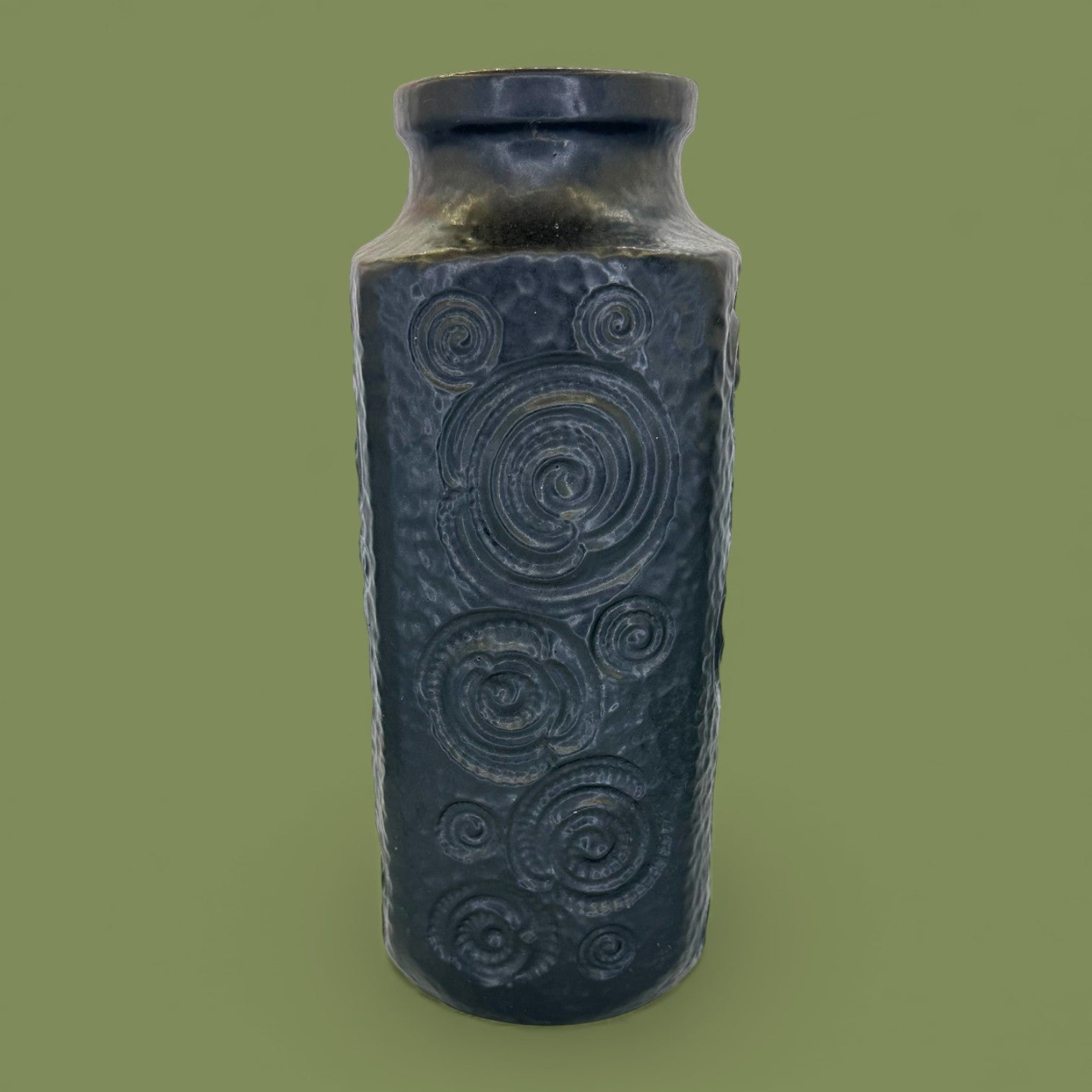 This West German Midcentury Modern Replacement Vase embodies the timeless beauty of 1960s design, where craftsmanship met bold artistic expression. Made by Scheurich, this Jura ceramic vase (model 232-25) features a textured lava glaze finish — a signature hallmark of West German pottery. The raised spiral motifs and rich dark glaze create a stunning interplay of texture and depth, capturing the essence of the midcentury modern movement. A statement piece that reflects both history and sophistication, this Replacement Vase is ideal for collectors or design enthusiasts who value sculptural decor.